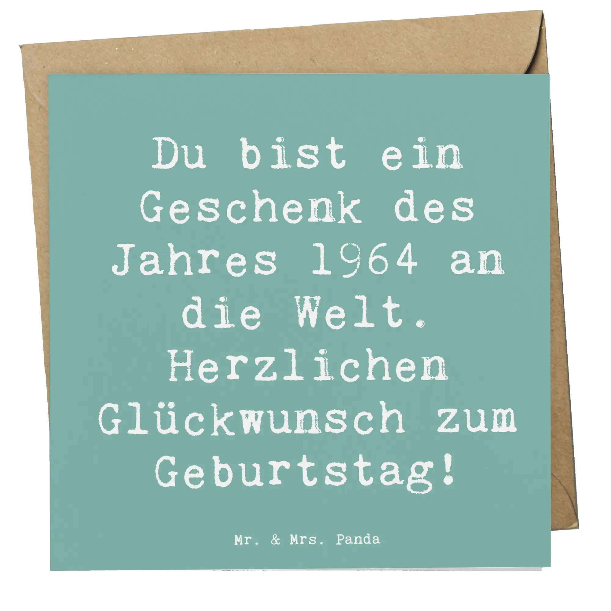 Deluxe Karte „1964 Geburtstag“ – die liebevolle Geburtstagskarte aus der Mr. & Mrs. Panda Geburtsjahr-Kollektion. Mit dem herzlichen Spruch „Du bist ein Geschenk des Jahres 1964 an die Welt. Herzlichen Glückwunsch zum Geburtstag!“ zauberst Du sofort ein Lächeln auf das Gesicht des Geburtstagskindes. 🎉