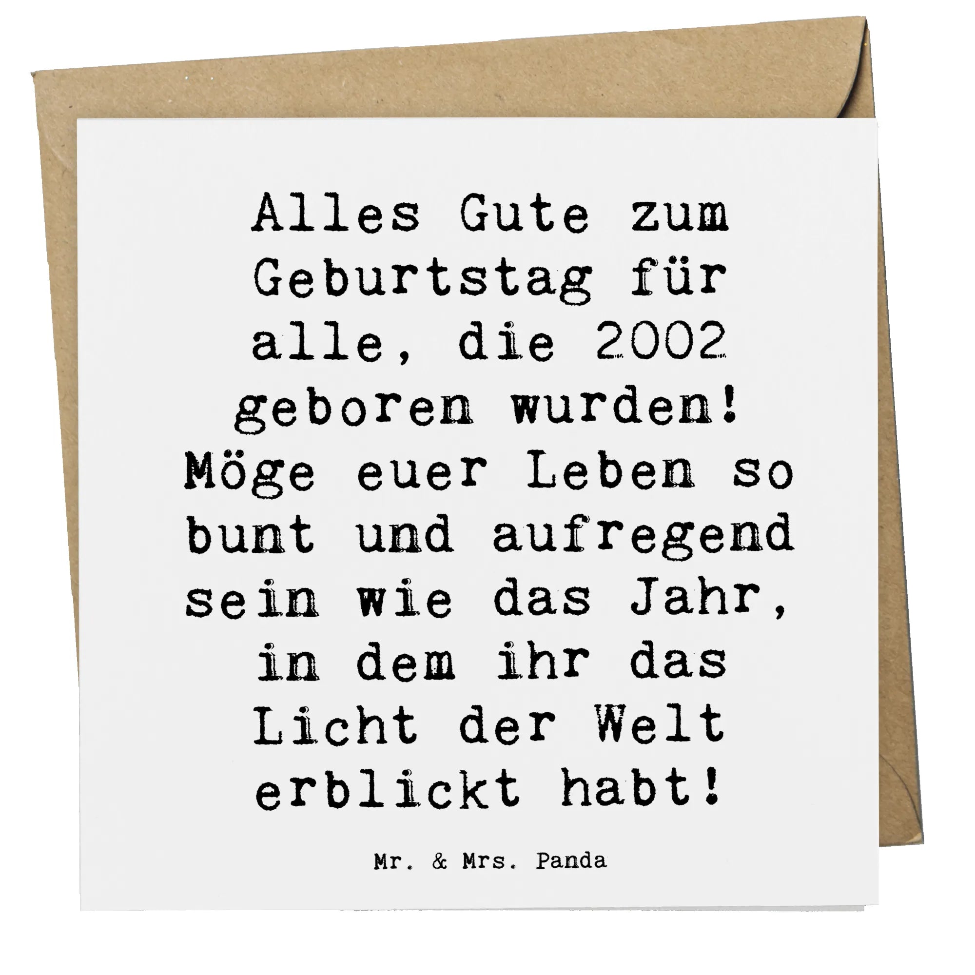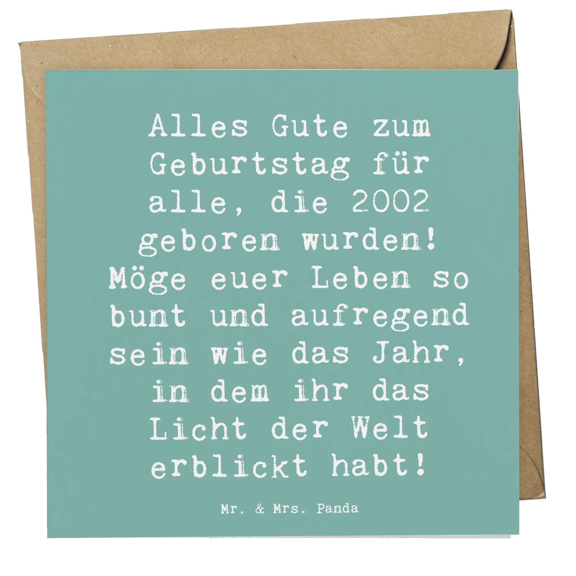 Diese Deluxe Karte gehört zur besonderen Kollektion Geburtstag Geburtsjahr von Mr. & Mrs. Panda. Jedes Detail dieser Karte wurde mit viel Liebe gestaltet. Die originellen Motive und Sprüche sind handgezeichnet und tragen die unverwechselbare Handschrift von Mrs. Panda. Die Karten der Kollektion sind ideal für alle, die etwas Einzigartiges suchen, das sowohl Freude bereitet als auch eine bleibende Erinnerung schafft. Mit der Deluxe Karte 2002 Geburtstag schenkst du nicht nur eine Karte, sondern ein Stück Glück, das lange in Erinnerung bleibt.