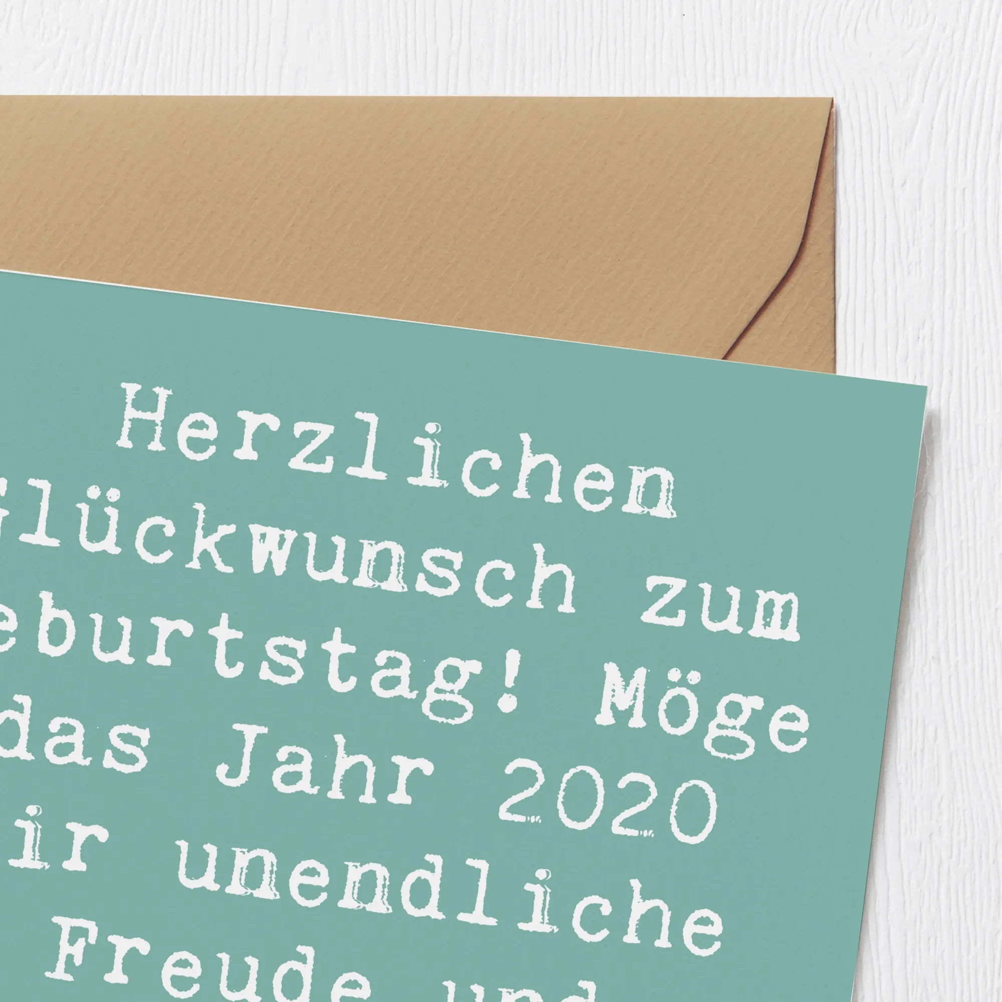 Die Vorderseite ziert ein liebevoll gestaltetes Motiv mit dem Spruch: "Herzlichen Glückwunsch zum Geburtstag! Möge das Jahr 2020 dir unendliche Freude und Abenteuer bringen!" Dieser wunderbare Wunsch ist nicht nur ein Spruch, sondern ein Versprechen für ein Jahr voller Glücksmomente, die alle festgehalten werden sollten.