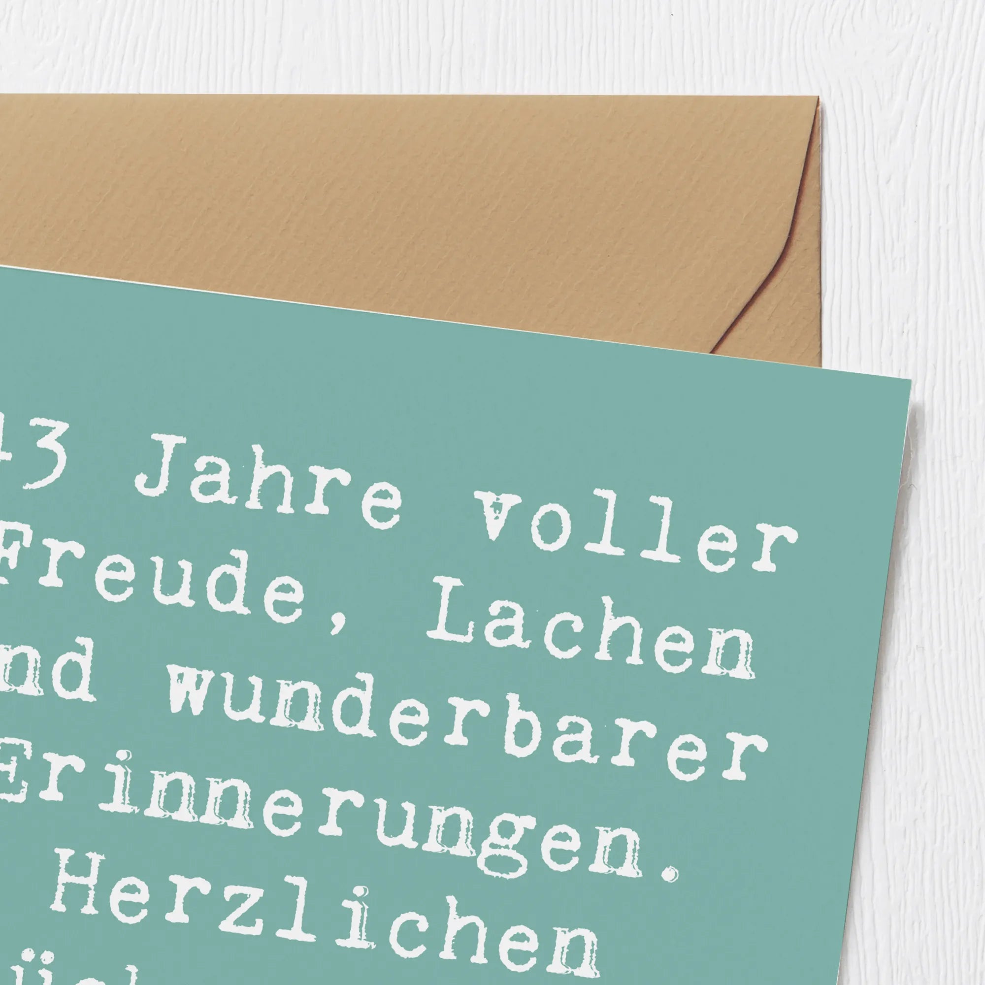 Die Karte ist aus edlem 300 Gramm Karton gefertigt, der eine matte Optik hat und sich anfühlt, als wäre sie speziell für diesen besonderen Anlass gemacht. Mit dem Spruch „43 Jahre voller Freude, Lachen und wunderbarer Erinnerungen. Herzlichen Glückwunsch zum Geburtstag!“ bringt sie ein Lächeln auf die Gesichter der Geburtstagskinder und macht jeden Geburtstag einzigartig.