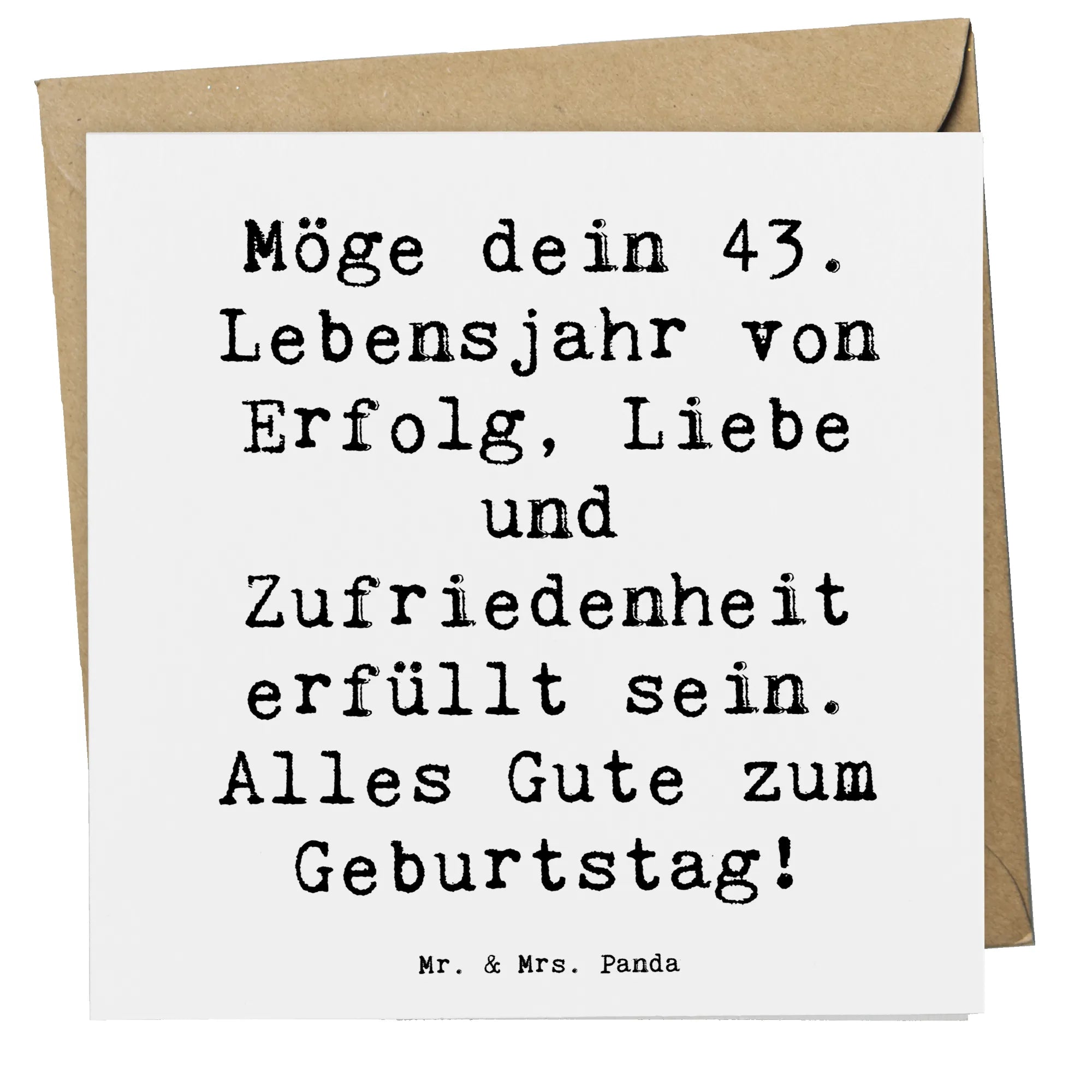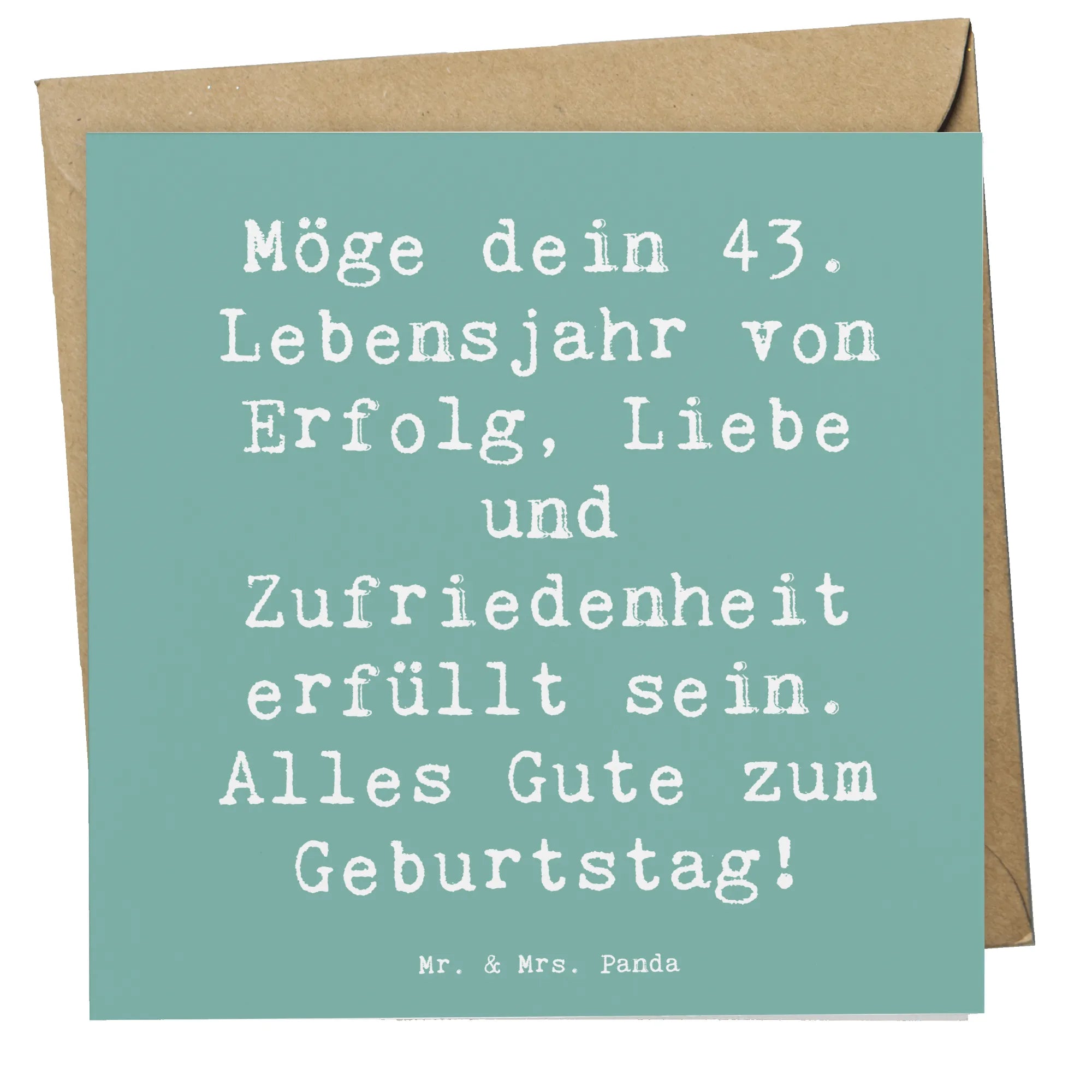 Die Deluxe Karte zum 43. Geburtstag von Mr. & Mrs. Panda ist das perfekte Geschenk für all jene, die ihren besonderen Tag gebührend feiern möchten. Mit der liebevoll gestalteten Grußkarte, die mit dem Spruch 'Möge dein 43. Lebensjahr von Erfolg, Liebe und Zufriedenheit erfüllt sein. Alles Gute zum Geburtstag!' veredelt ist, schaffst du unvergessliche Momente. Diese hochwertige Klappkarte misst 140 mm x 140 mm und aus einem edlen 300 Gramm Karton gefertigt, besticht sie durch ihre hochglänzende Vorderseite und matte Innenseite, die ideal für persönliche Botschaften ist.