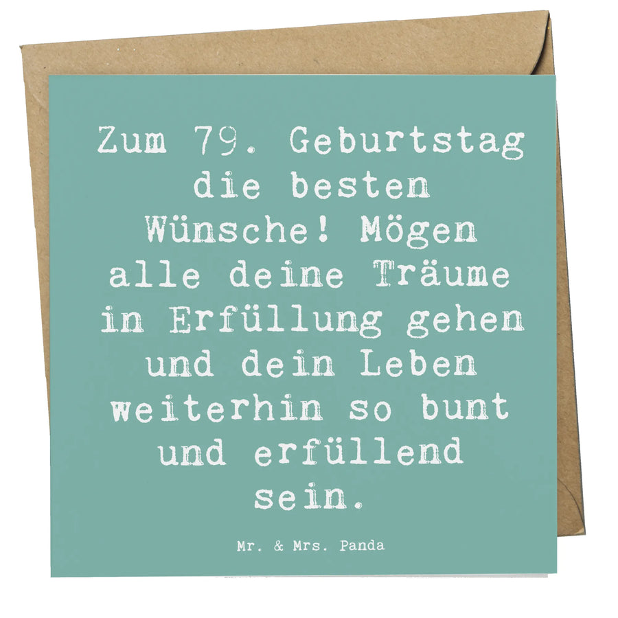 Die Deluxe Karte zum 79. Geburtstag von Mr. & Mrs. Panda ist das perfekte Geschenk, um Deinen Lieben an diesem besonderen Tag eine große Freude zu bereiten! Mit dem liebevollen Slogan 'Zum 79. Geburtstag die besten Wünsche! Mögen alle deine Träume in Erfüllung gehen und dein Leben weiterhin so bunt und erfüllend sein.' ist diese Karte ideal, um die besten Wünsche zum Geburtstag auf kreative und herzliche Weise zu übermitteln.