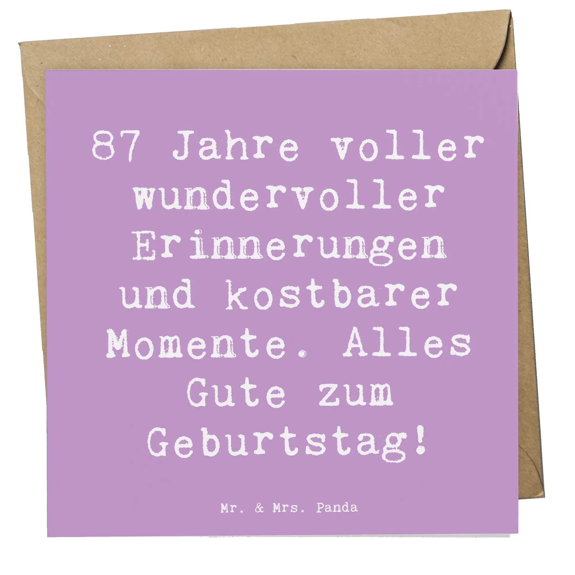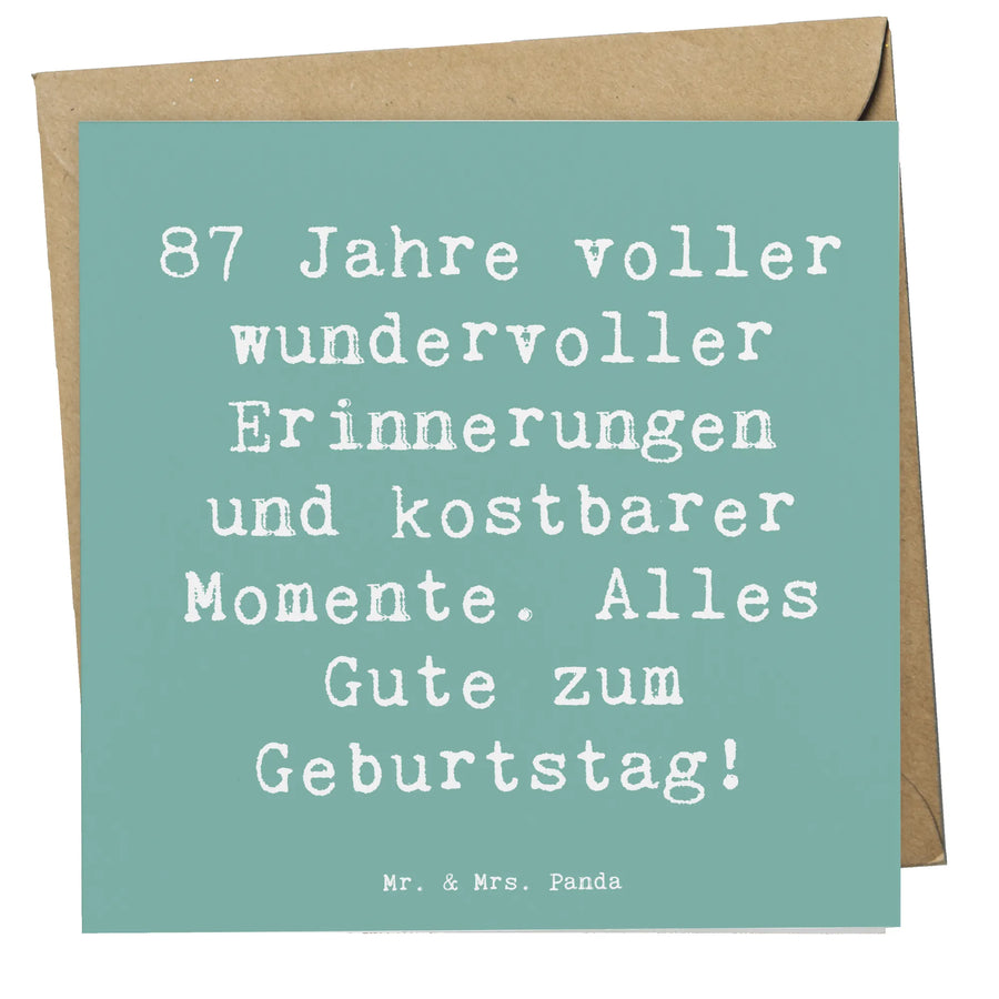 Lass dich von der Lebensfreude und den liebevollen Designs unserer Produkte inspirieren, und mache den 87. Geburtstag besonders. Diese Karte ist mehr als nur ein Stück Papier; sie ist ein Ausdruck von Liebe und Wertschätzung und wird sicher lange in Erinnerung bleiben. Jeder ist einzigartig in seinem Alter, und bei Mr. & Mrs. Panda bekommst du die ideale Möglichkeit, dies kreativ auszudrücken. Mach diesen besonderen Tag zu einem unvergesslichen Erlebnis mit der Deluxe Karte zum 87. Geburtstag.