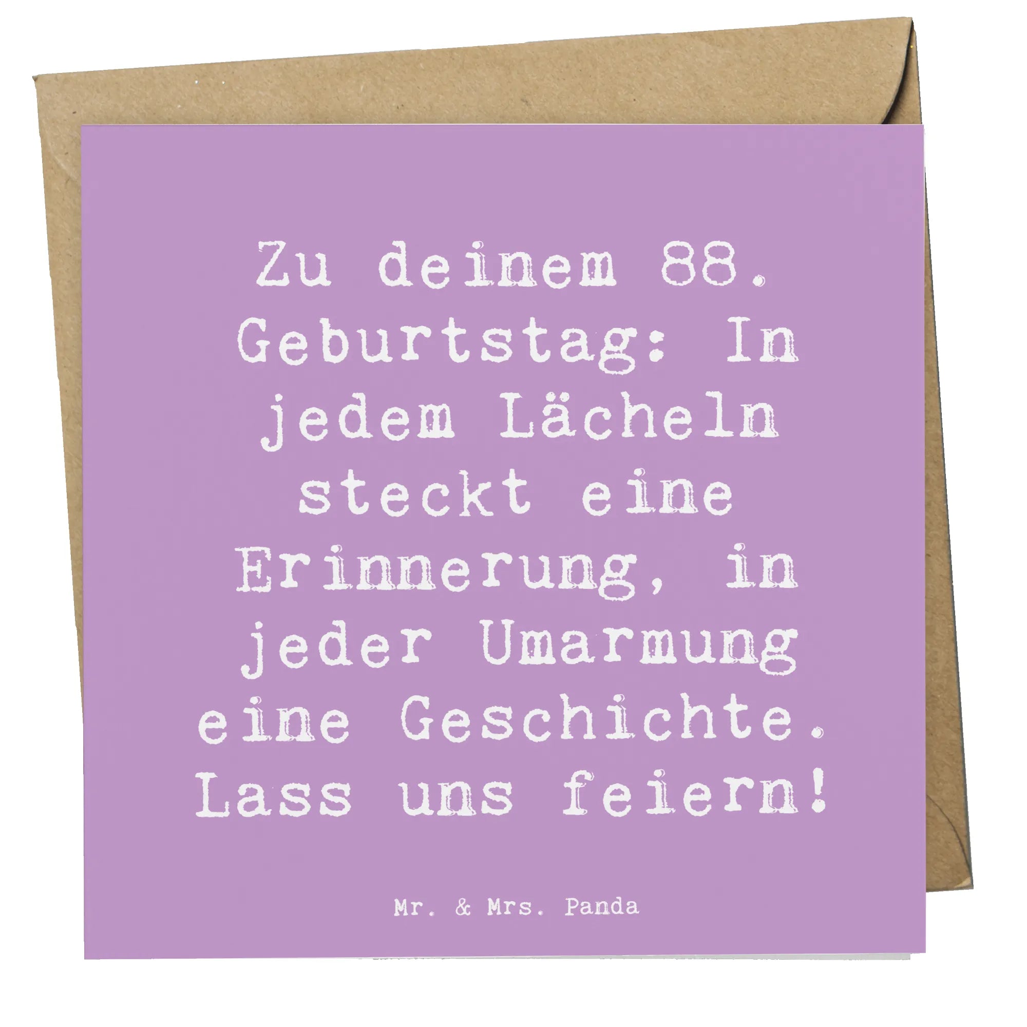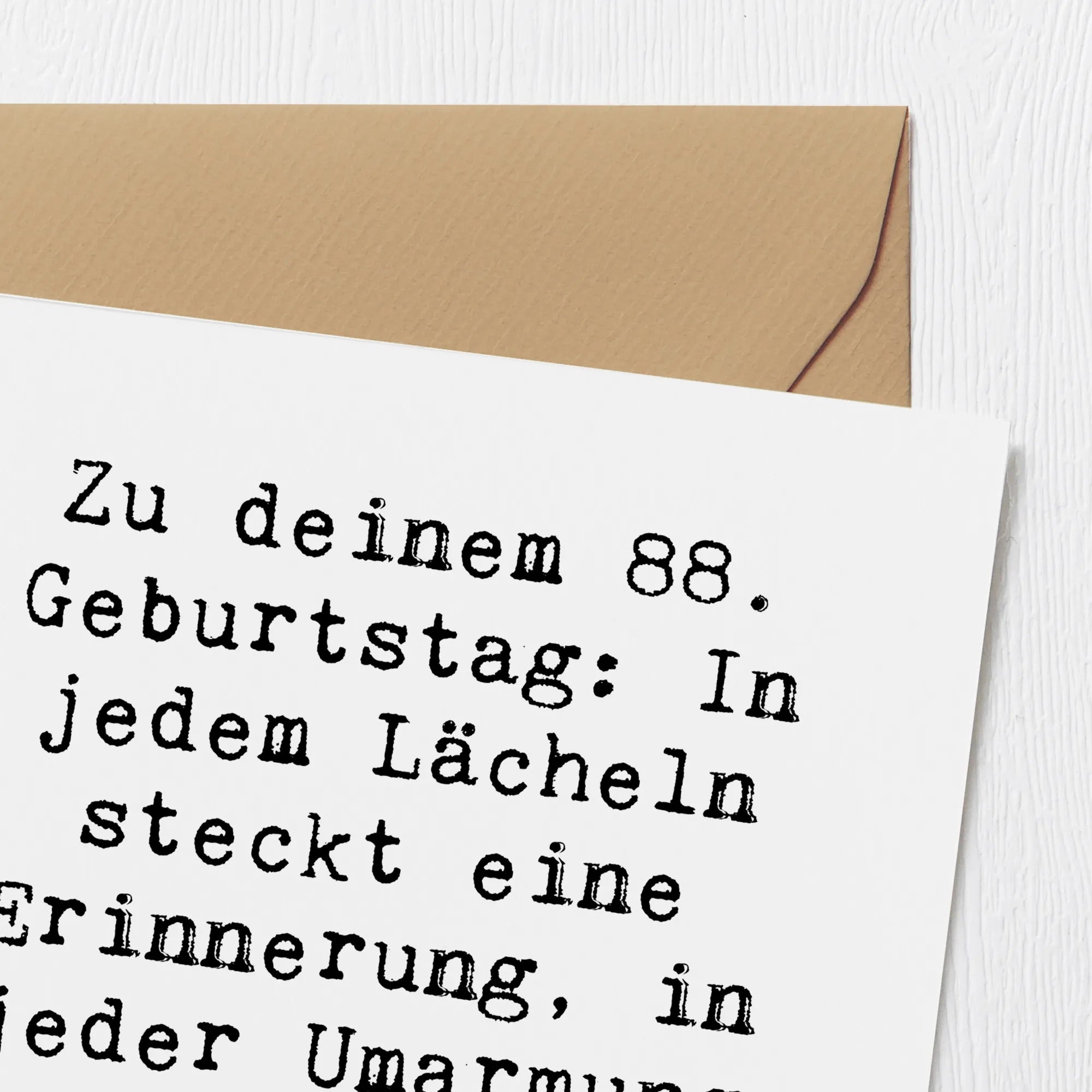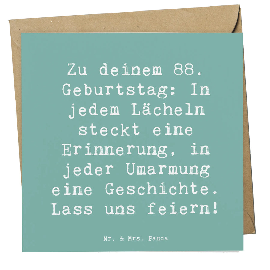 Mit einem liebevollen Spruch bedruckt – "Zu deinem 88. Geburtstag: In jedem Lächeln steckt eine Erinnerung, in jeder Umarmung eine Geschichte. Lass uns feiern!" – bringt diese Karte Freude und Wärme in jede Feier.