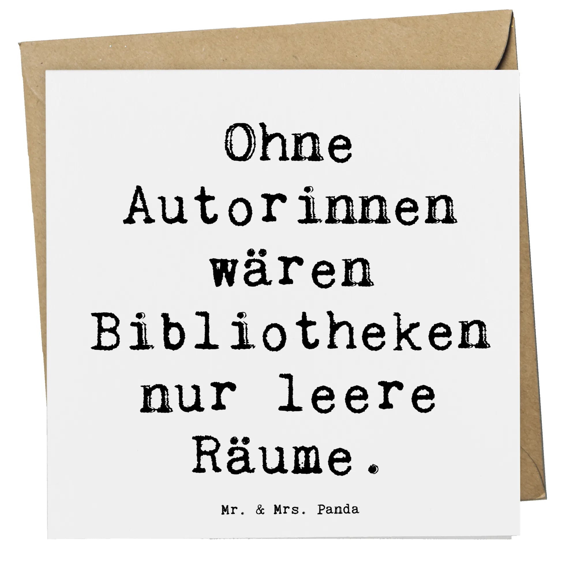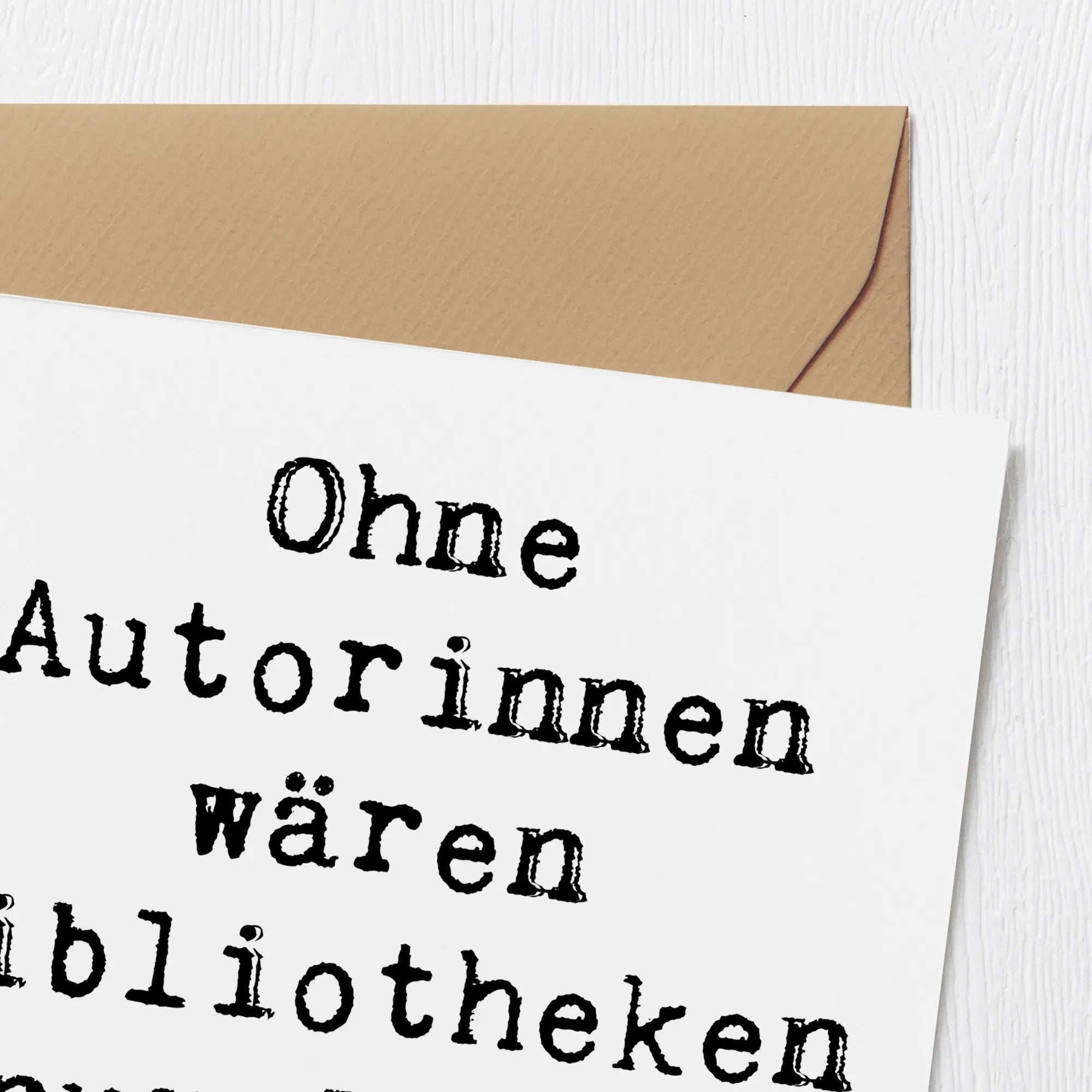 Der süße Spruch "Ohne Autorinnen wären Bibliotheken nur leere Räume" auf der Vorderseite inspiriert und lässt die Herzen der Leser höherschlagen. Die Karte kommt in einem eleganten, hochglänzend veredelten Umschlag, was ihr einen besonderen Touch verleiht.