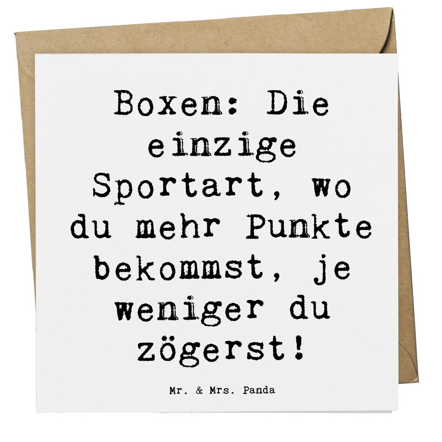 Bist du auf der Suche nach dem perfekten Geschenk für einen Sportfan? Unsere Deluxe Karte mit dem einzigartigen Boxen-Motiv von Mr. & Mrs. Panda ist genau das Richtige! Diese hochwertige, quadratische Karte misst 140 mm x 140 mm und wurde aus edlem 300 Gramm Karton gefertigt, was sie besonders stabil und ansprechend macht. Sie ist liebevoll bedruckt mit dem Spruch "Boxen: Die einzige Sportart, wo du mehr Punkte bekommst, je weniger du zögerst!". Damit bringst du nicht nur ein Lächeln auf die Gesichter deiner Freunde oder Familienmitglieder, sondern auch die Motivation, die sie im Sport benötigen.