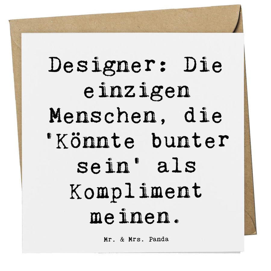 Der Slogan "Designer: Die einzigen Menschen, die 'Könnte bunter sein' als Kompliment meinen" verleiht der Karte eine humorvolle Note und unterstreicht die kreative Welt der Designer. Die Berufe-Sammlung von Mr. & Mrs. Panda bietet zudem viel Liebe in jedem Detail – die Motive sind handgezeichnet und stecken voller Leben und Kreativität.