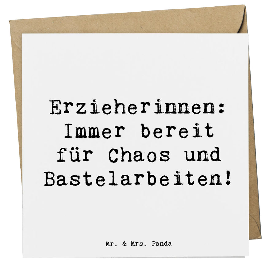 Die Deluxe Karte Erzieherin aus unserer besonderen Berufe Kollektion von Mr. & Mrs. Panda ist das perfekte Geschenk für jede Erzieherin, die Deine Wertschätzung für ihre unermüdliche Arbeit verdient. Mit dem liebevollen Spruch "Erzieherinnen: Immer bereit für Chaos und Bastelarbeiten!" bringt die Karte ein Lächeln in ihr Gesicht und betont die leidenschaftliche Hingabe, die sie tagtäglich in die Erziehung steckt.