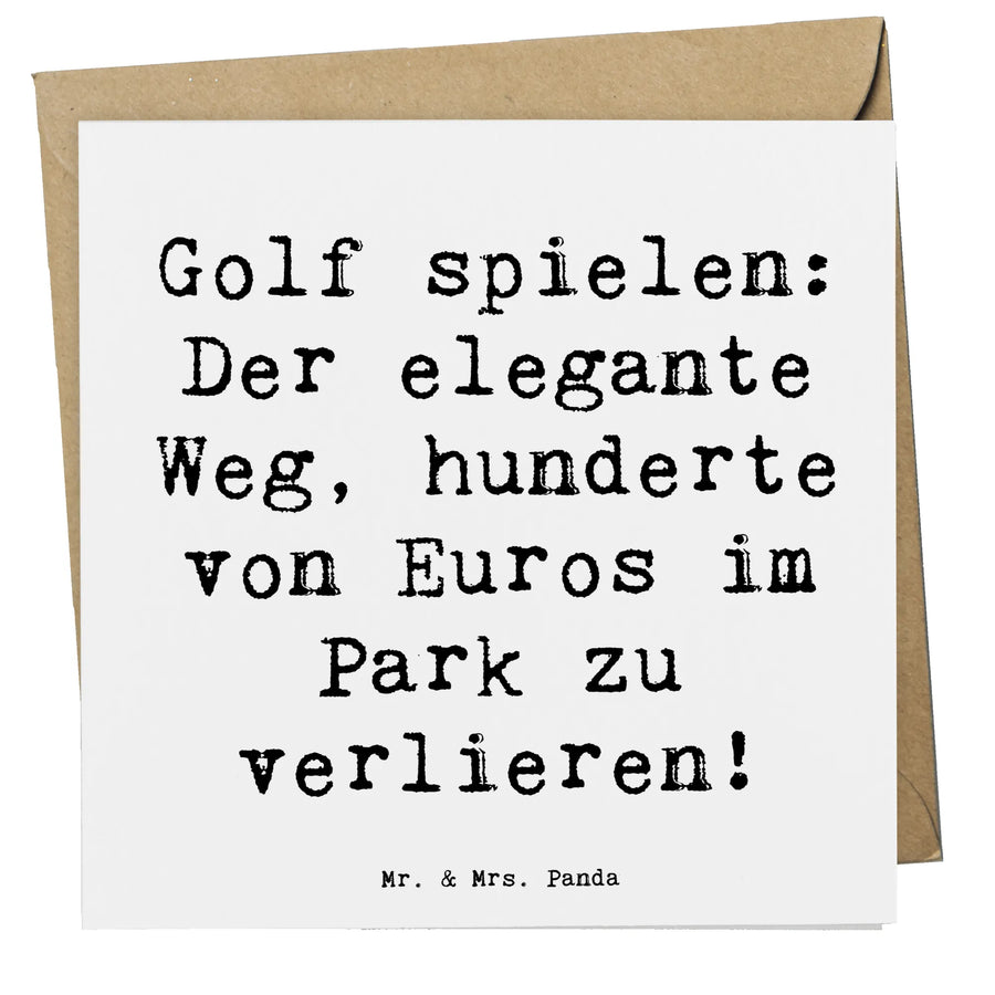 Die Deluxe Karte Golf von Mr. & Mrs. Panda ist das perfekte Geschenk für alle leidenschaftlichen Golfer und Sportliebhaber. Dieses wunderschöne, hochwertige quadratische Produkt misst 140 mm x 140 mm und besteht aus edlem, 300 Gramm schwerem Karton, der sowohl matte als auch hochglänzende Oberflächen bietet. Auf der Vorderseite dieser einzigartigen Karte findest du den humorvollen Spruch: 'Golf spielen: Der elegante Weg, hunderte von Euros im Park zu verlieren!' – ein witziger Begleiter für jeden Golfenthusiasten. Die innenseitige Fläche ist blanko, sodass du persönliche Botschaften oder Glückwünsche ganz nach deinem Geschmack hinzufügen kannst.