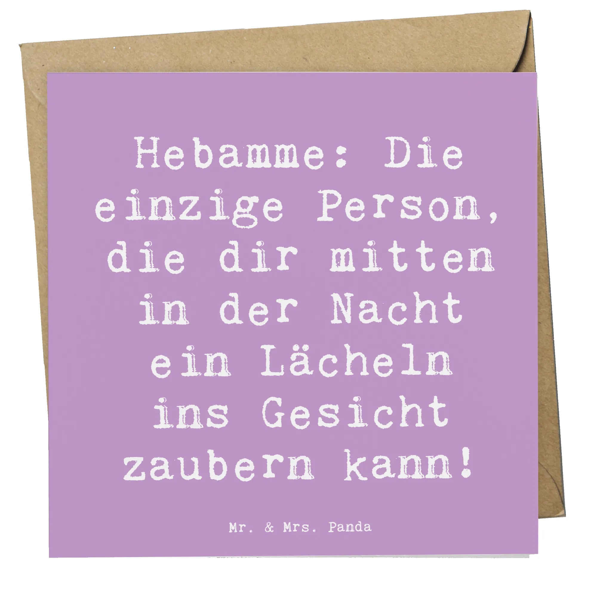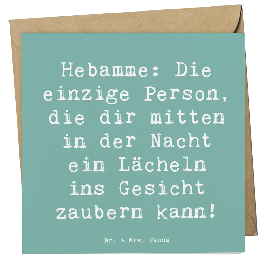 Die Deluxe Karte "Hebamme" von Mr. & Mrs. Panda ist das perfekte Geschenk für Hebammen oder werdende Mütter. Mit dem herzerwärmenden Spruch "Hebamme: Die einzige Person, die dir mitten in der Nacht ein Lächeln ins Gesicht zaubern kann!" zaubert diese Karte nicht nur ein Lächeln, sondern auch warmherzige Gedanken in die Herzen der Beschenkten. Diese hochwertige Klappkarte misst 140 mm x 140 mm und ist aus erstklassigem 300 Gramm Karton gefertigt, was sie besonders edel und einzigartig macht.
