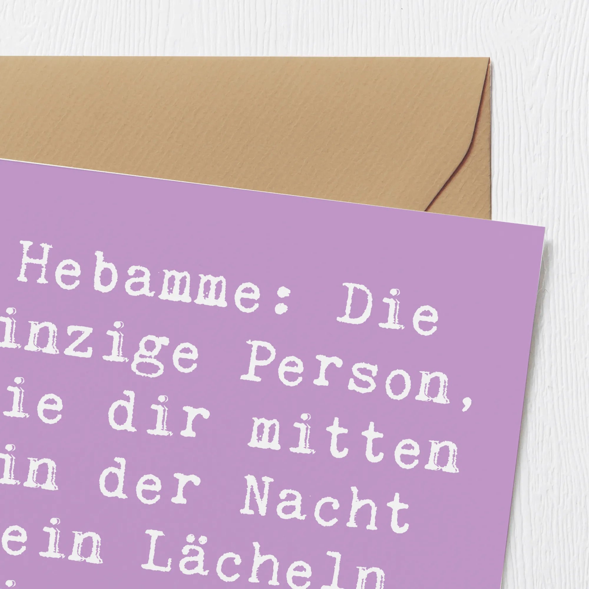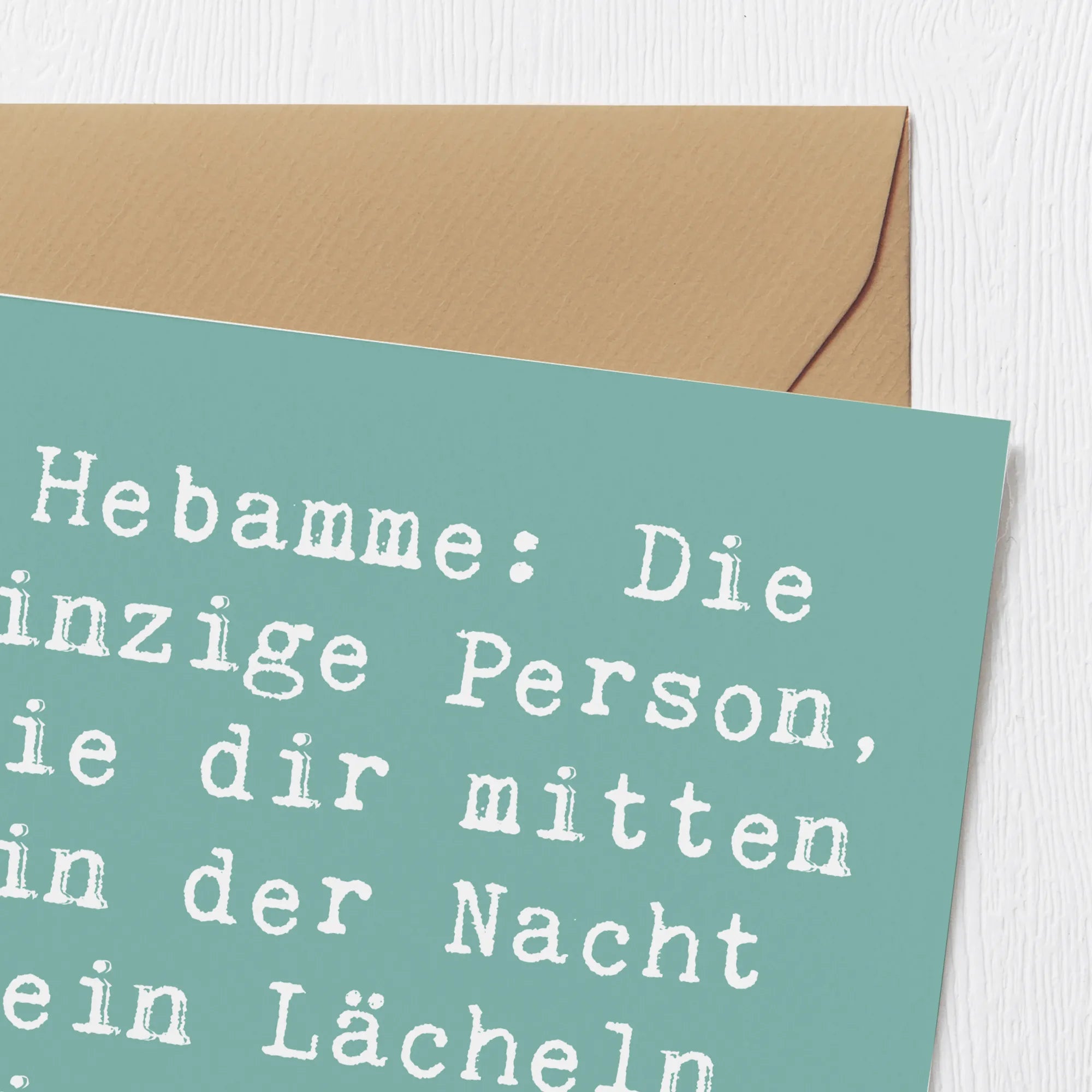 Ob zum Geburtstag, zur Hochzeit, anlässlich eines Berufsjubiläums oder einfach so – diese Karte eignet sich für viele feierliche Anlässe. Besonders geeignet ist sie, um einer Hebamme zu danken oder sie zu ehren. Denn der Slogan 'Hebamme: Die einzige Person, die dir mitten in der Nacht ein Lächeln ins Gesicht zaubern kann!' spricht für sich und bringt die Wertschätzung für diese wundervolle Profession zum Ausdruck.