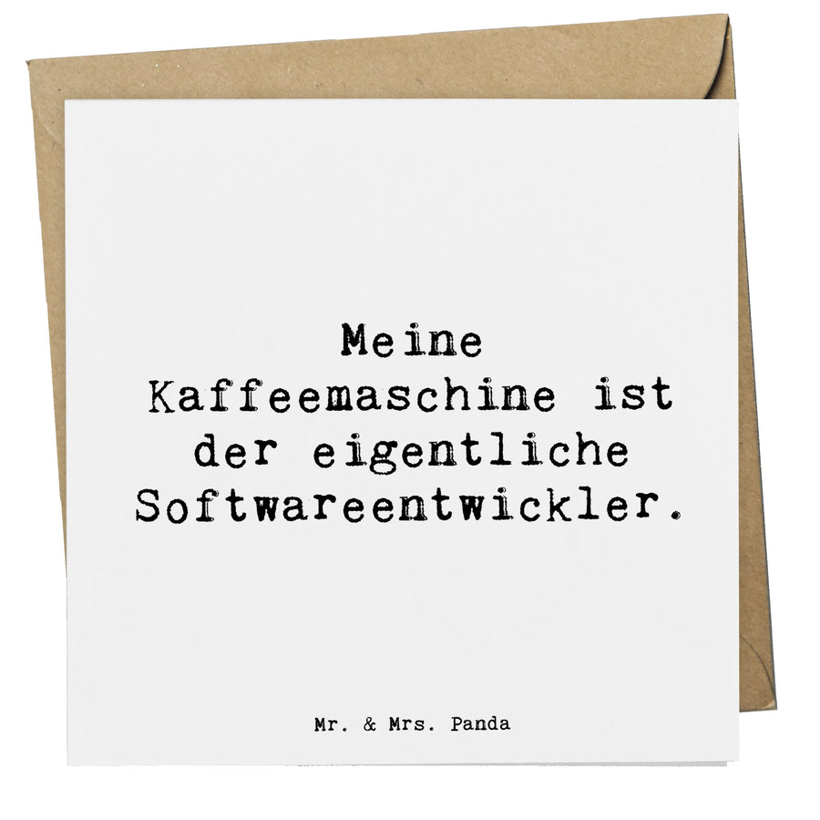Die Karte misst 140 mm x 140 mm und ist aus hochwertigem 300 Gramm Karton gefertigt, der sowohl robust als auch elegant wirkt. Das besondere Motiv dieser Karte zeigt humorvoll, wie wichtig Softwareentwickler in unserer digitalen Welt sind. Der witzige Slogan "Meine Kaffeemaschine ist der eigentliche Softwareentwickler." sorgt für ein Schmunzeln und bringt das Herz eines jeden Programmierers zum Leuchten.