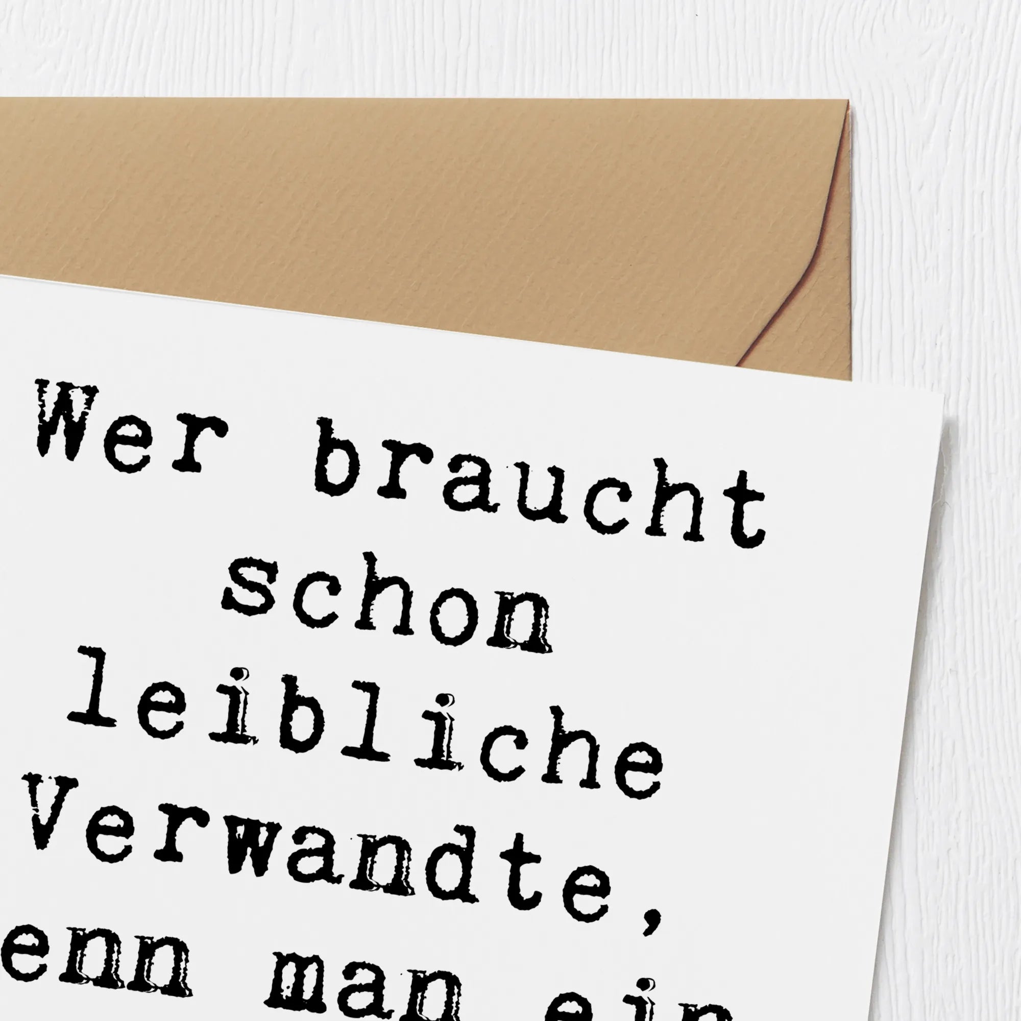 Mit der Aufschrift "Wer braucht schon leibliche Verwandte, wenn man ein Stiefkind hat?" bringt sie zum Schmunzeln und zeigt, dass die Liebe zu einem Stiefkind keine Grenzen kennt. Verschenke oder benutze diese Karte für Anlässe wie Geburtstage, Hochzeiten, oder einfach mal zum Danke sagen – sie eignet sich perfekt als Glückwunschkarte oder Einladungskarte.