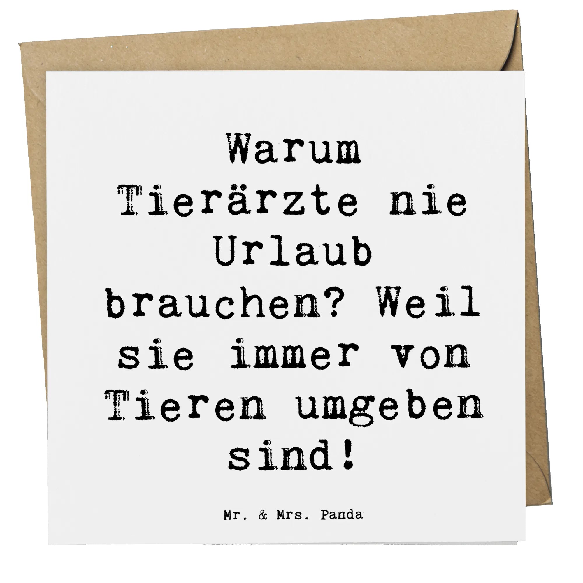 Die Deluxe Karte Tierarzt von Mr. & Mrs. Panda ist ein ideales Geschenk für Tierliebhaber und Tierärzte! Diese hochwertige, quadratische Karte misst 140 mm x 140 mm und besteht aus edlem 300 Gramm Karton. Mit ihrem liebevoll gestalteten Motiv und dem witzigen Slogan "Warum Tierärzte nie Urlaub brauchen? Weil sie immer von Tieren umgeben sind!" bringst Du jeden Tierarzt zum Schmunzeln.
