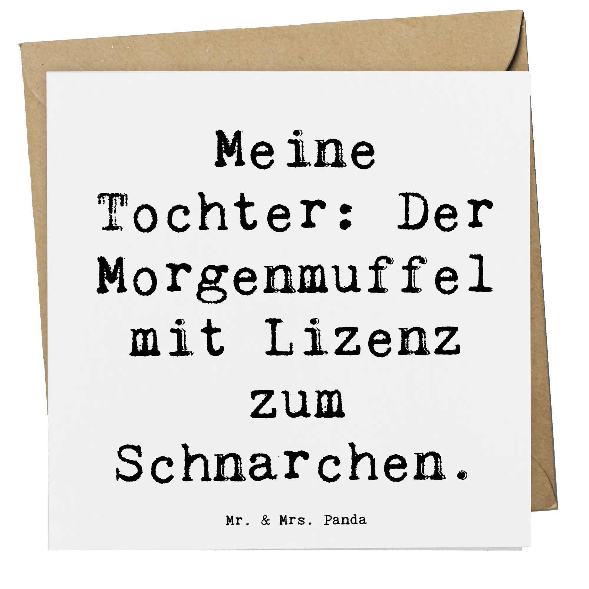 Die Deluxe Karte "Tochter" von Mr. & Mrs. Panda ist das perfekte Geschenk für all diejenigen, die ihren Töchtern eine ganz besondere Freude machen möchten. Durch das süße Motiv und den humorvollen Spruch "Meine Tochter: Der Morgenmuffel mit Lizenz zum Schnarchen" wird jeder Geburtstag, jede Hochzeit oder einfach mal so zur wahren Herzensangelegenheit.
