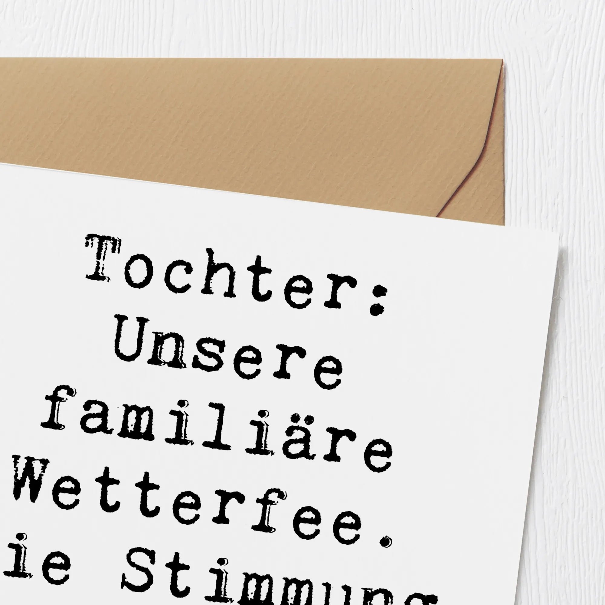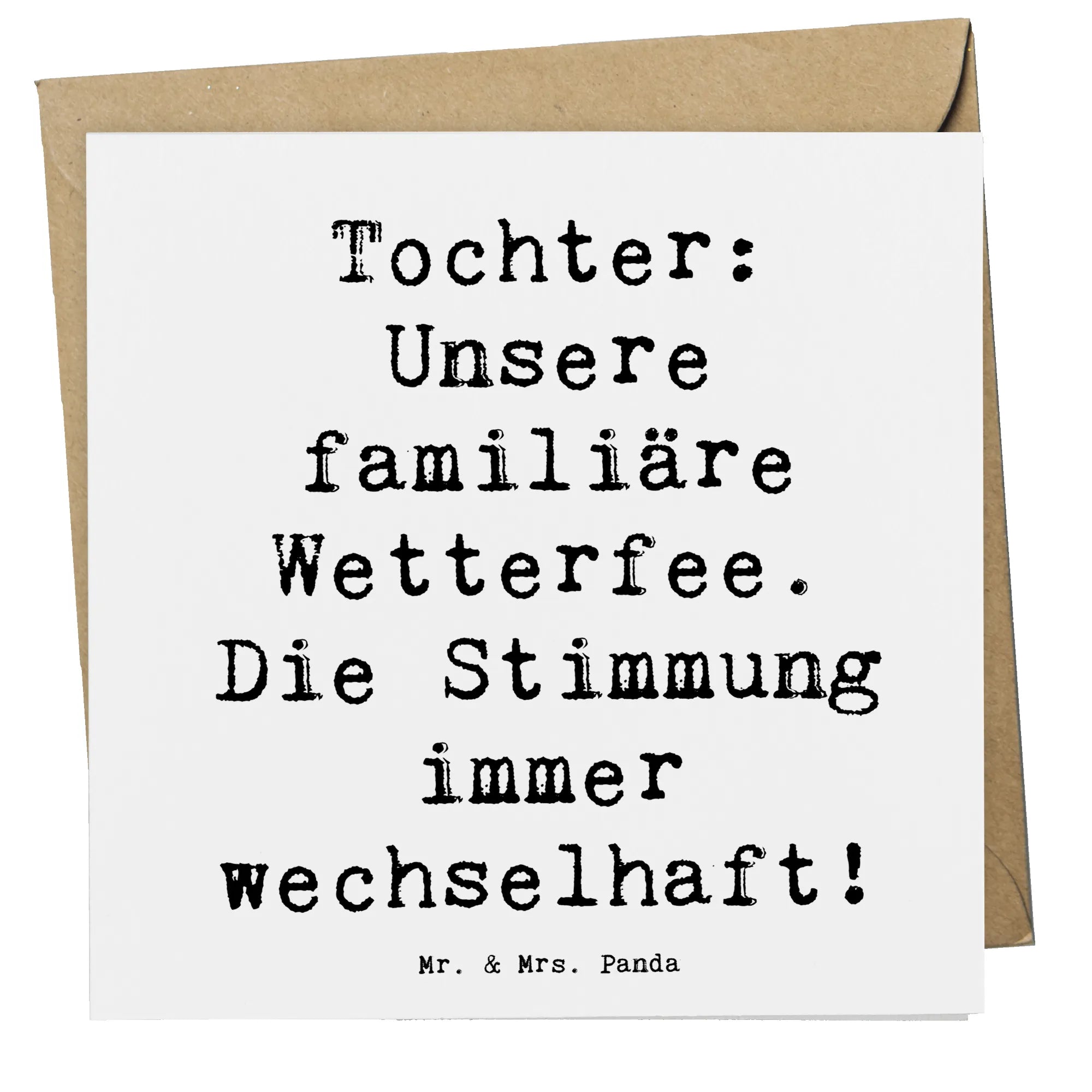Die Vorderseite der Karte ist mit einem einzigartigen Spruch verziert: "Unsere familiäre Wetterfee. Die Stimmung immer wechselhaft!" Dieser humorvolle und zugleich liebevolle Spruch spiegelt die lebendige Persönlichkeit der Töchter wider und ist ein tolles Highlight für jede Gelegenheit. Die Innenseite der Karte ist blanko, sodass du deiner Kreativität freien Lauf lassen und persönliche Botschaften oder Glückwünsche hinzufügen kannst.