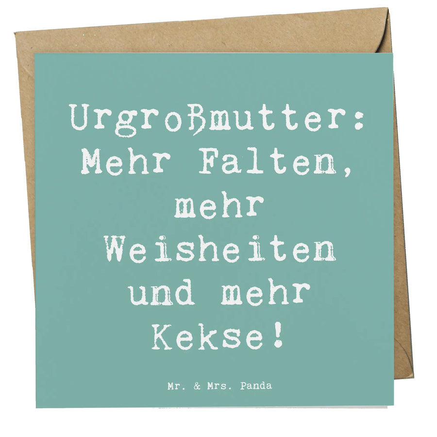 Die Deluxe Karte "Urgroßmutter" von Mr. & Mrs. Panda ist das perfekte Geschenk für all jene, die Familientraditionen und die Geschichten ihrer Vorfahren schätzen. Mit ihrem charmanten Spruch "Urgoßmutter: Mehr Falten, mehr Weisheiten und mehr Kekse!" zaubert diese Grußkarte ein Lächeln auf das Gesicht jedes Empfängers.