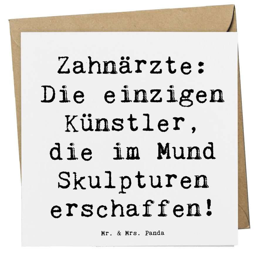 Unsere quadratische Deluxe Karte aus der Berufe-Kollektion von Mr. & Mrs. Panda ist ein kleines Kunstwerk für Zahnärztinnen und Zahnärzte. Mit dem frechen und herzlichen Spruch „Zahnärzte: Die einzigen Künstler, die im Mund Skulpturen erschaffen!“ schenkst Du Anerkennung und ein Lächeln zugleich. 🎨🦷