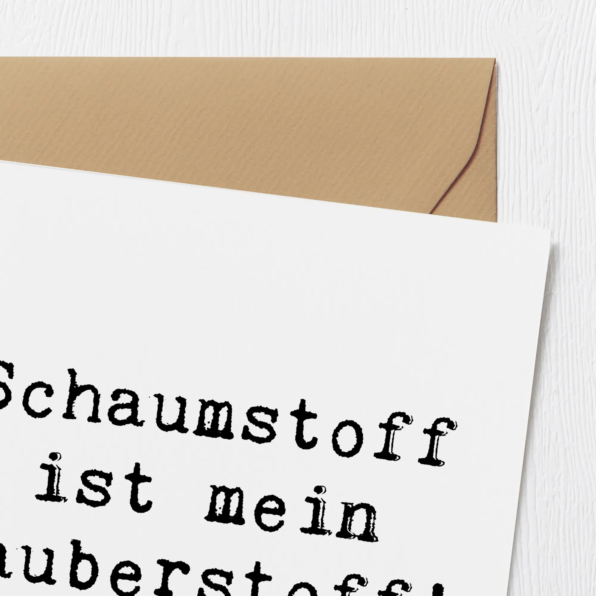 Die Deluxe Karte Polsterin aus der Kollektion Berufe von Mr. & Mrs. Panda ist der perfekte Gruß für alle, die das Handwerk der Polsterung lieben. Mit ihrem liebevoll gestalteten Design und dem spritzigen Slogan "Schaumstoff ist mein Zauberstoff!" spricht diese Karte vor allem diejenigen an, die mit viel Herzblut Polsterarbeiten erledigen.