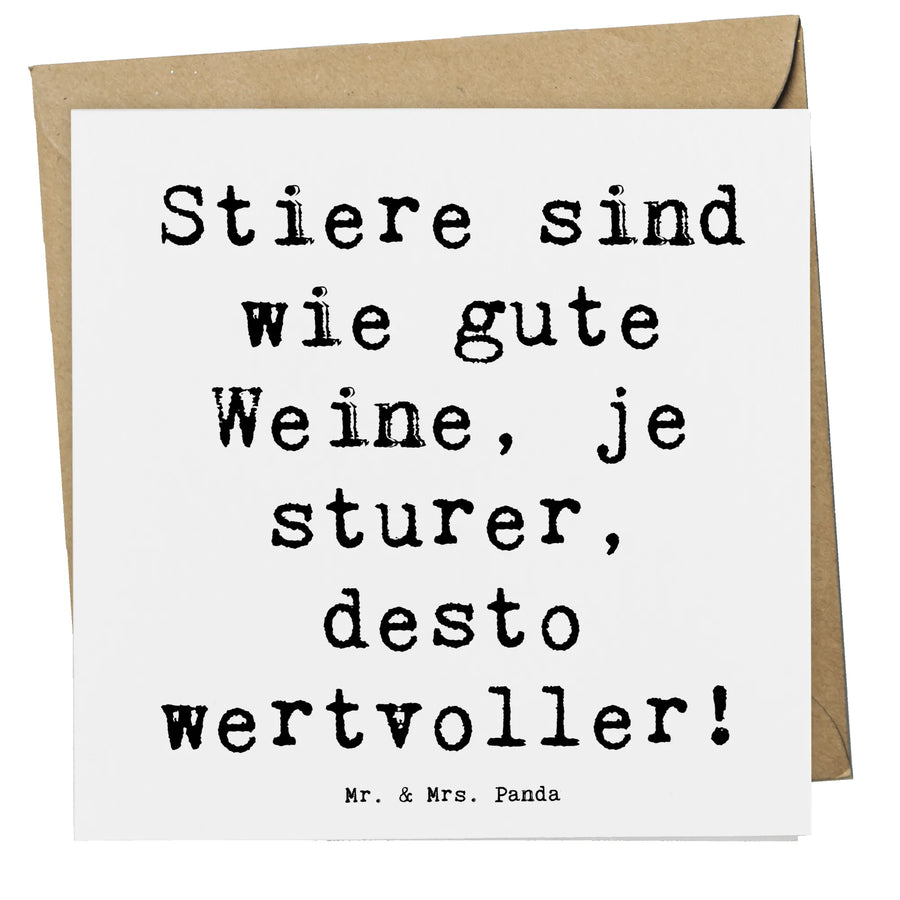 Die Deluxe Karte Stier aus der Sternzeichen-Kollektion von Mr. & Mrs. Panda ist das perfekte Geschenk für alle Astrologie-Begeisterten. Sie ist aus hochwertigem 300 Gramm Karton gefertigt und besticht durch ihre hochglänzend veredelte Vorderseite, die mit dem charmanten Spruch 'Stiere sind wie gute Weine, je sturer, desto wertvoller!' bedruckt ist. Diese Karte hat die Maße von 140 mm x 140 mm und bietet viel Platz auf der matte Innenseite für persönliche Nachrichten und Glückwünsche.