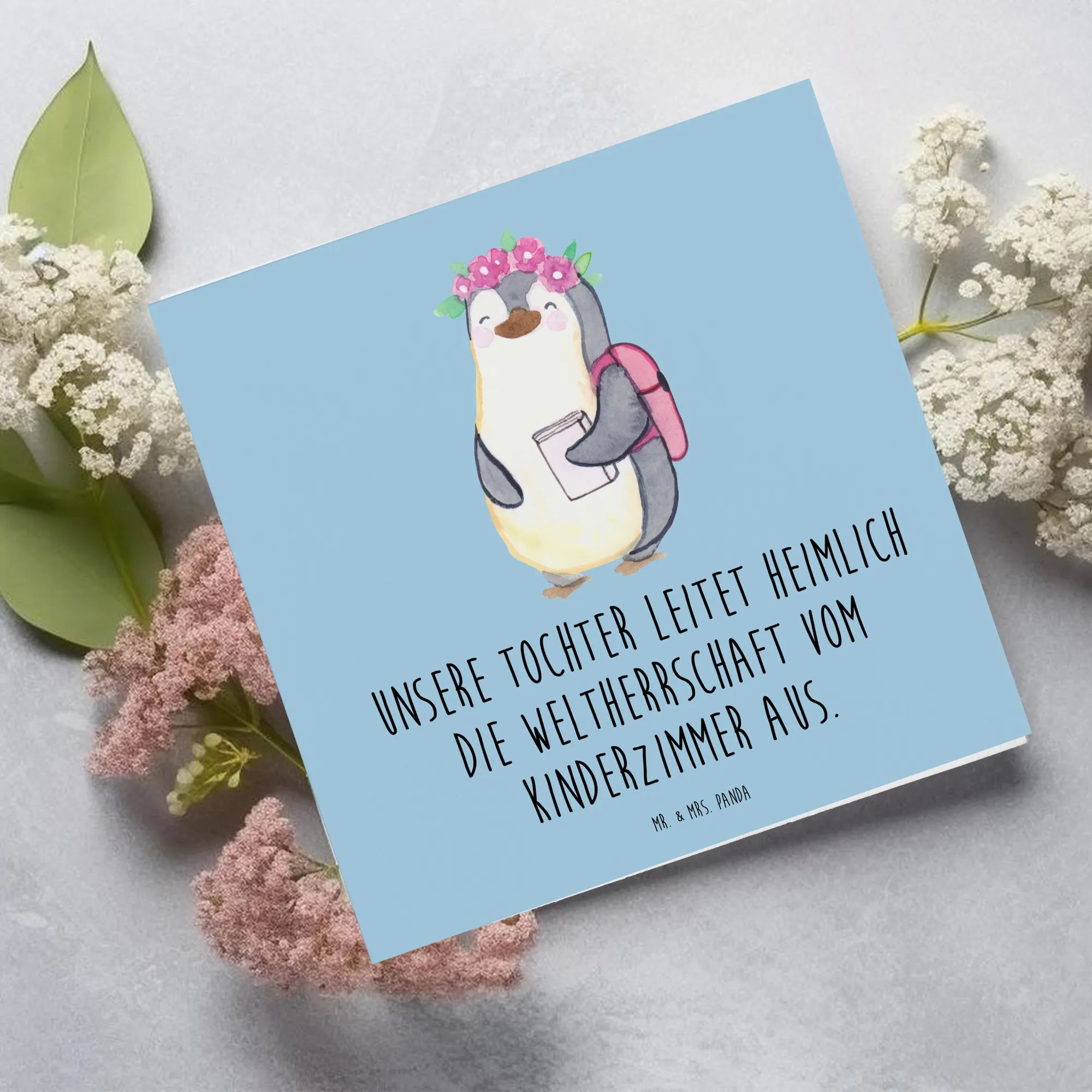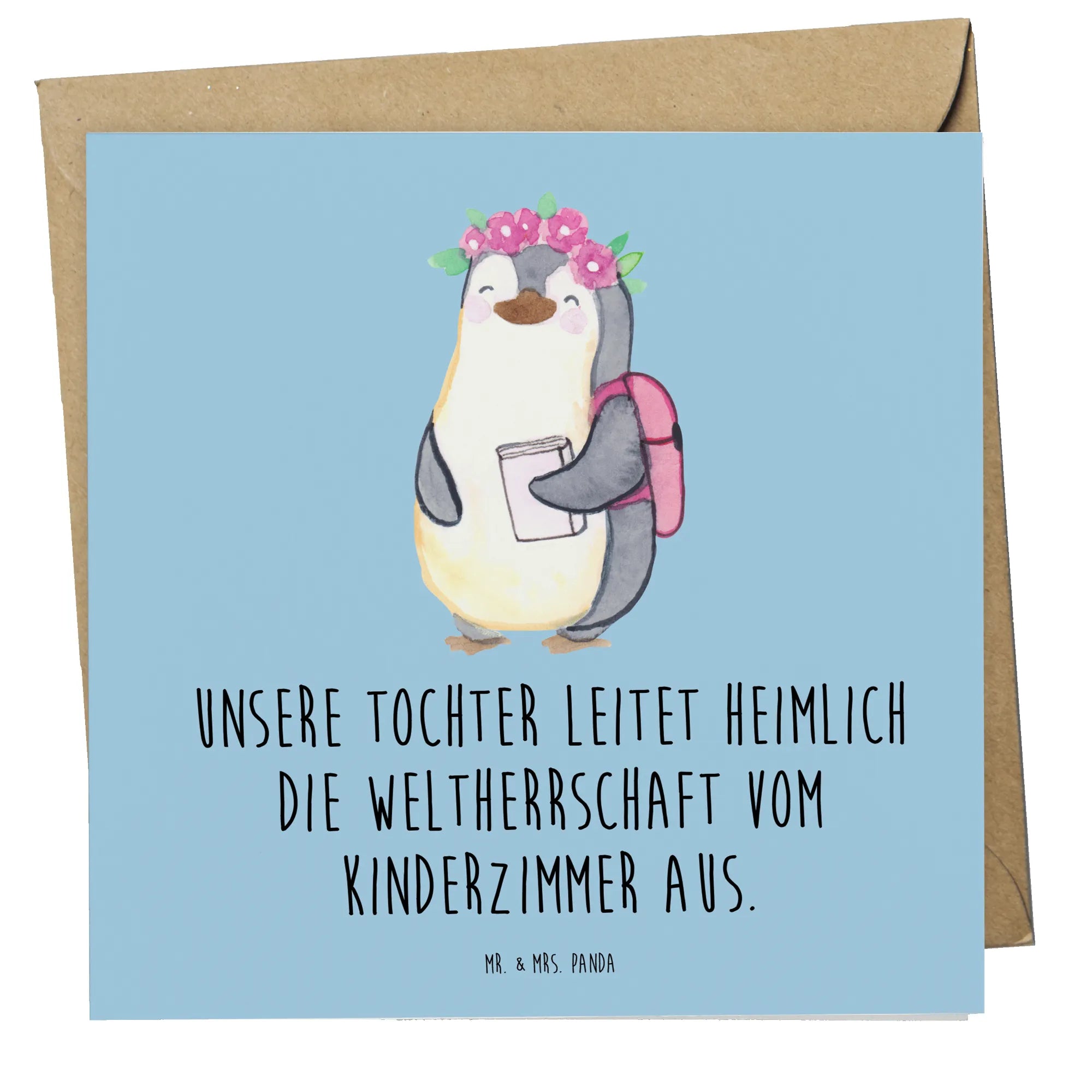 Die Deluxe Karte "Tochter" von Mr. & Mrs. Panda ist das perfekte Geschenk für jeden Anlass, um deine Liebe und Wertschätzung auszudrücken. Unsere hochwertig gestaltete quadratische Klappkarte misst 140 mm x 140 mm und besticht durch einen edlen, hochglänzend veredelten Look. Die Vorderseite ziert ein wunderschönes Motiv mit dem Spruch: "Unsere Tochter leitet heimlich die Weltherrschaft vom Kinderzimmer aus." Dieser witzige und gleichzeitig liebevolle Spruch bringt garantiert ein Lächeln auf die Lippen jeder Tochter. Diese Karte ist nicht nur ein Geschenk, sondern auch eine Gelegenheit, Deinen Gefühlen einen Ausdruck zu verleihen, sei es zum Geburtstag, zur Hochzeit oder einfach als liebevolle Geste zwischendurch.
