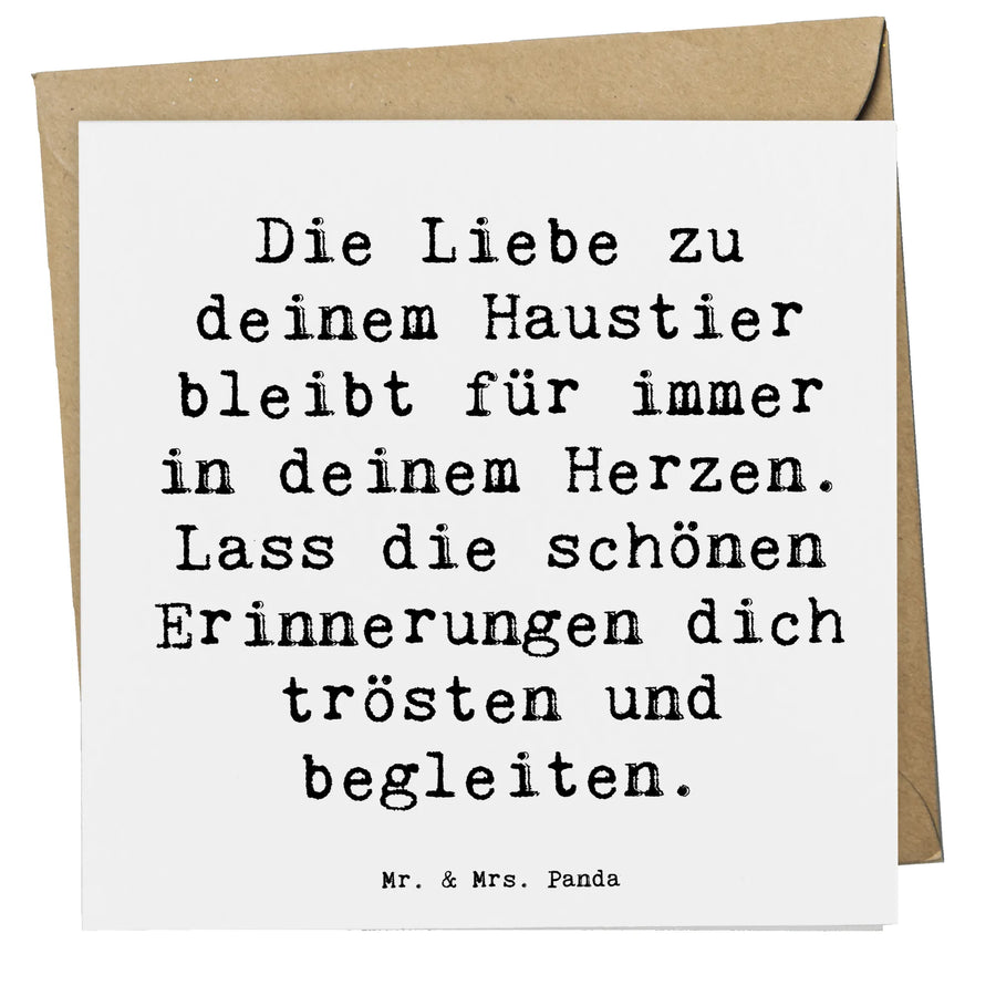 Die Deluxe Karte zur Trauerbewältigung nach dem Verlust eines Haustiers aus der beliebten Kollektion 'Mutmacher' von Mr. & Mrs. Panda ist das perfekte Geschenk für alle, die einen lieben Begleiter verloren haben. Mit einem berührenden Spruch, der sagt: 'Die Liebe zu deinem Haustier bleibt für immer in deinem Herzen. Lass die schönen Erinnerungen dich trösten und begleiten.', bietet diese Karte Trost und Unterstützung in einer schweren Zeit.