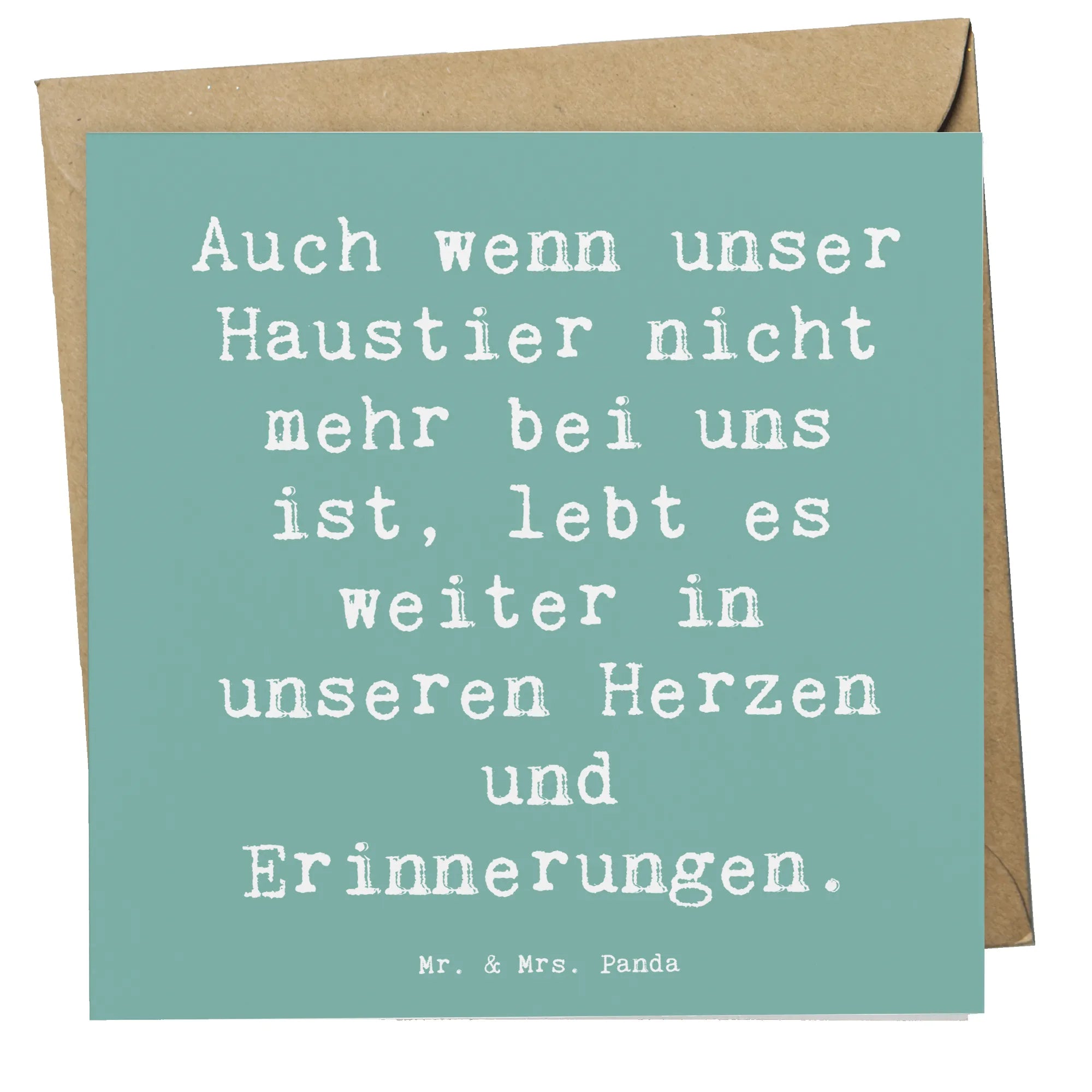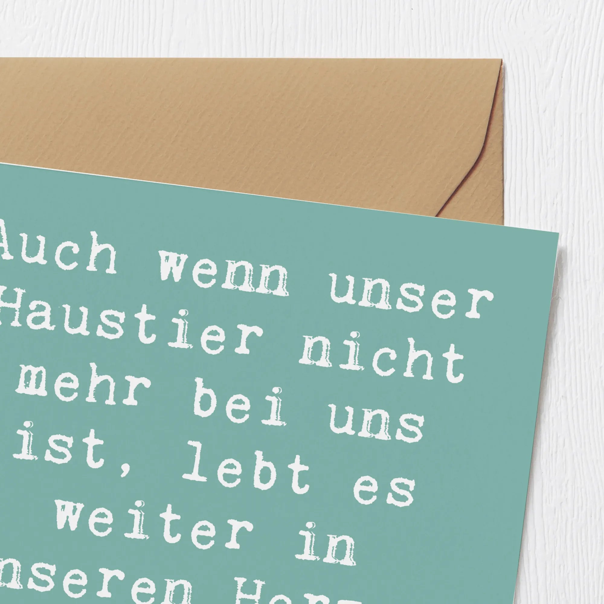 Mit dem einfühlsamen Spruch "Auch wenn unser Haustier nicht mehr bei uns ist, lebt es weiter in unseren Herzen und Erinnerungen." berührt die Karte auf eine besondere Art und Weise. Die Karte hat die Maße von 140 mm x 140 mm und besteht aus edlem, matt-glänzendem Karton in hochwertiger Optik. Sie ist perfekt für persönliche Botschaften geeignet, denn die Innenseite ist blanko und lässt viel Raum für individuelle Wünsche oder Erinnerungen.