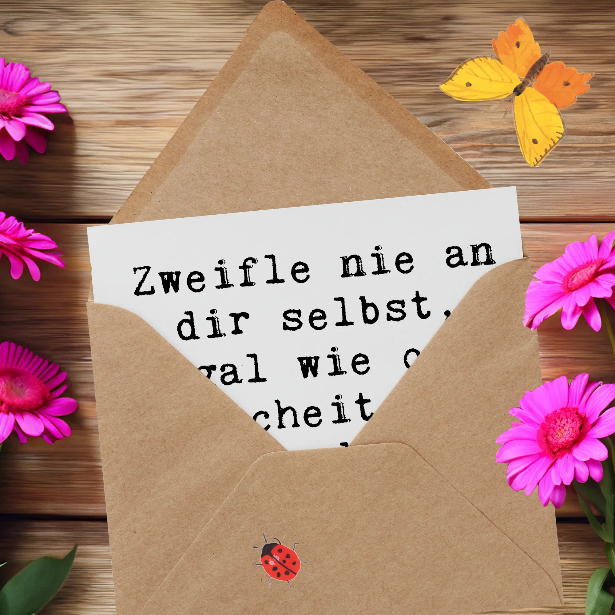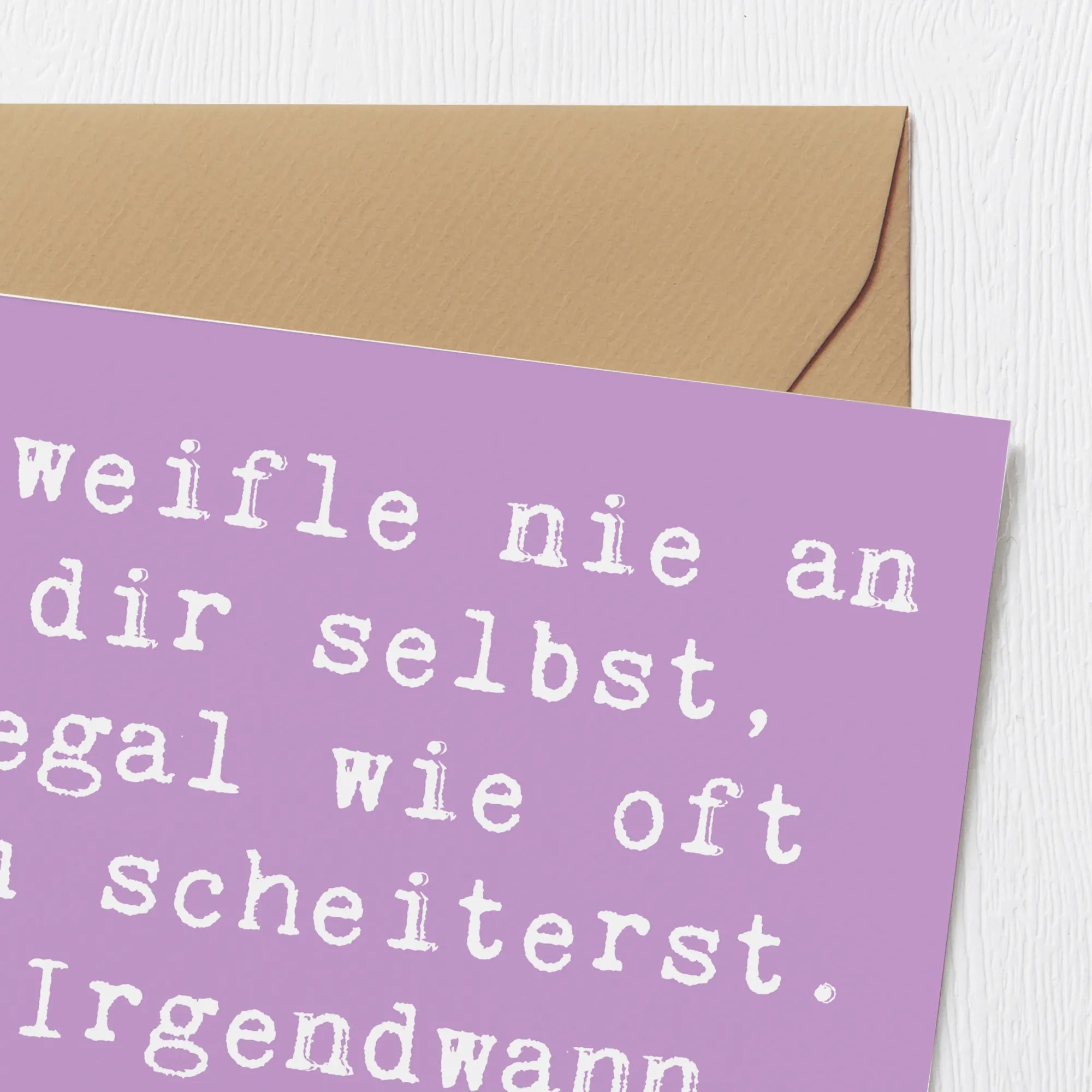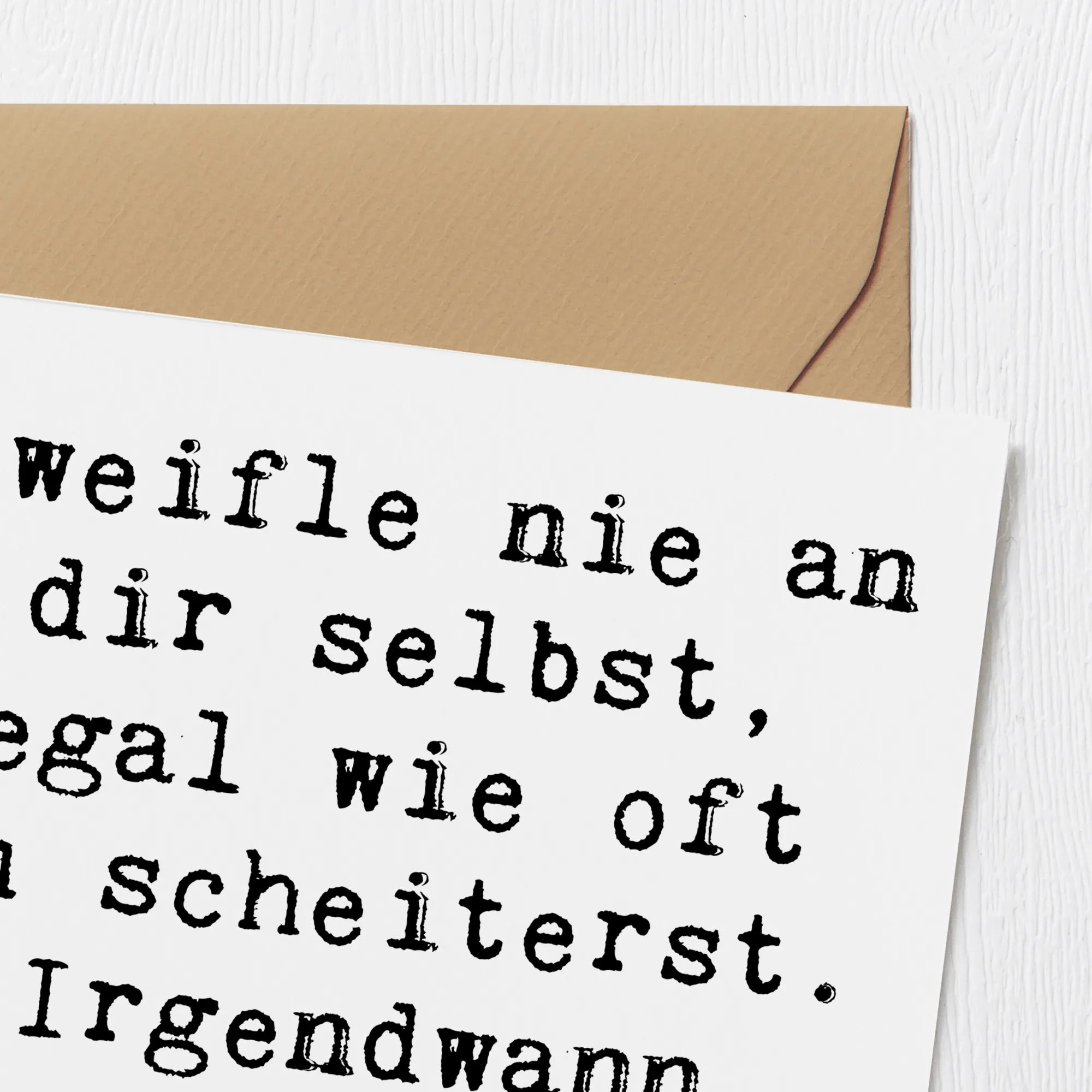 Ob zum Geburtstag, zur Hochzeit oder einfach um jemandem eine Freude zu machen – diese Karte ist für jeden feierlichen Anlass geeignet! Der eingedruckte Spruch "Zweifle nie an dir selbst, egal wie oft du scheiterst. Irgendwann klappt's bestimmt!" ist eine wunderbare Ermutigung für Freunde, Familie oder Bekannte. Der edle Umschlag, der inklusiv zur Karte kommt, rundet das Ganze ab und macht das Verschenken noch einfacher.