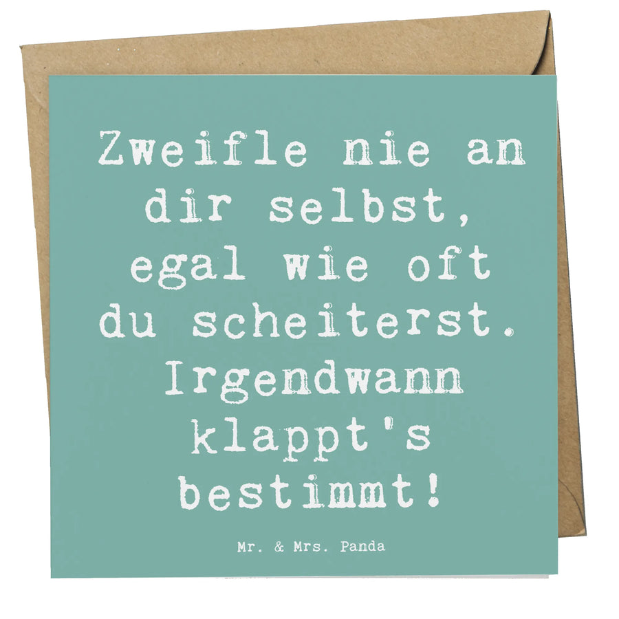 Die Deluxe Karte "Glaube an dich selbst" von Mr. & Mrs. Panda ist das perfekte Geschenk für all diejenigen, die Inspiration und Motivation brauchen. Mit ihrem einzigartigen Design, das mit dem kraftvollen Spruch "Zweifle nie an dir selbst, egal wie oft du scheiterst. Irgendwann klappt's bestimmt!" versehen ist, spricht diese Karte besonders Menschen an, die sich in schwierigen Lebenslagen befinden. Sie ist nicht nur eine wunderschöne Grußkarte, sondern auch eine liebevolle Erinnerung daran, an sich selbst zu glauben.