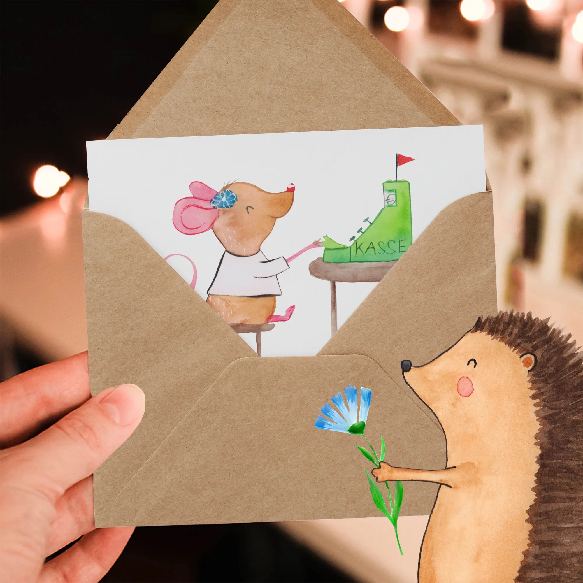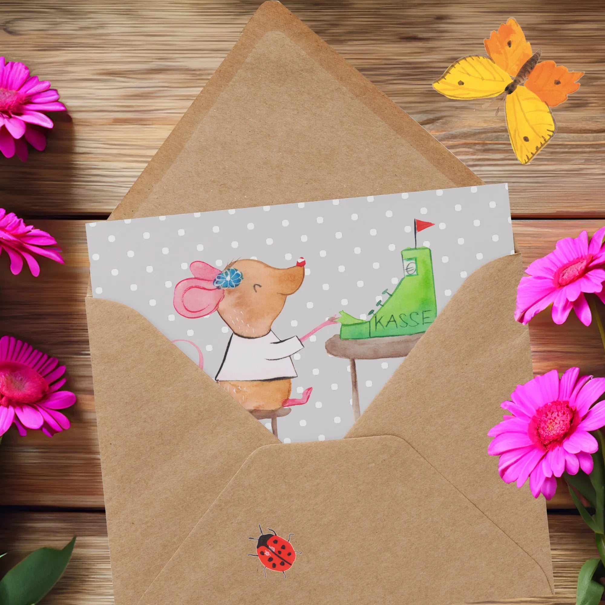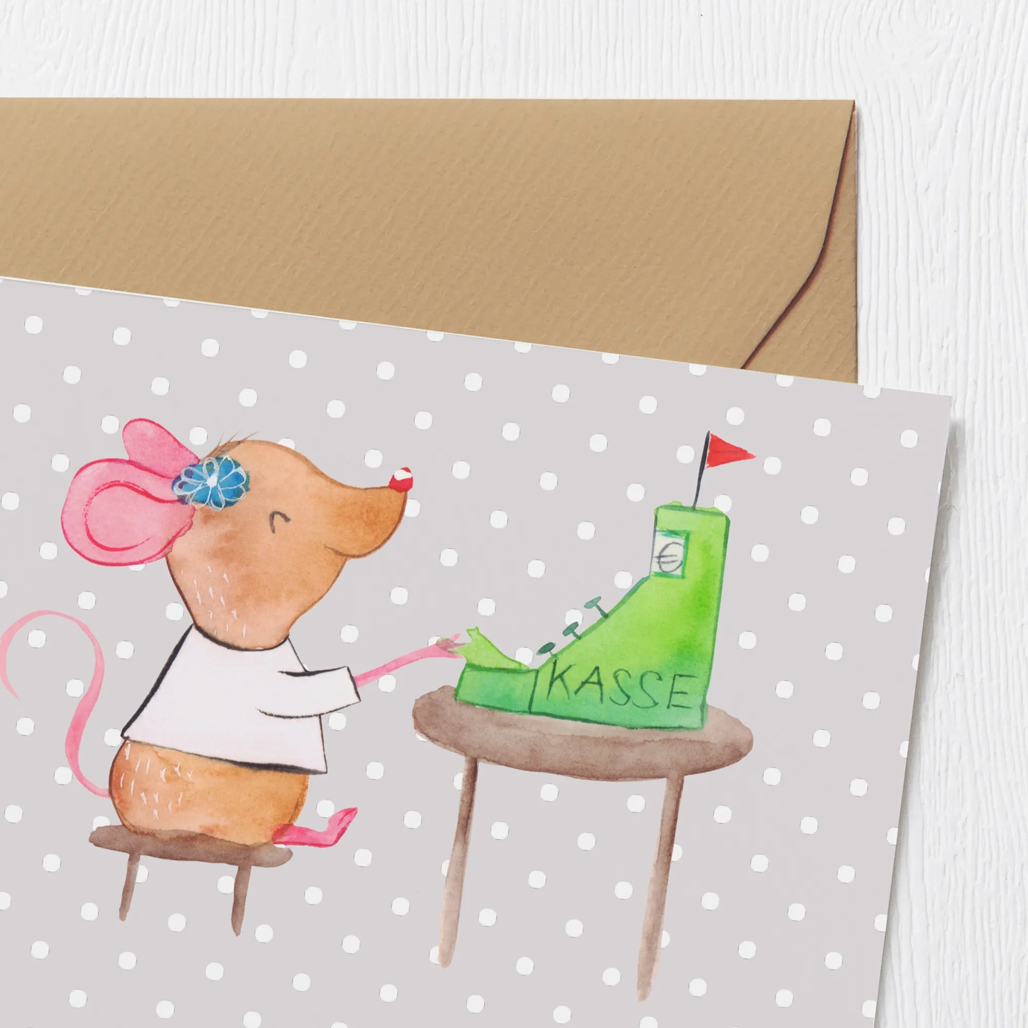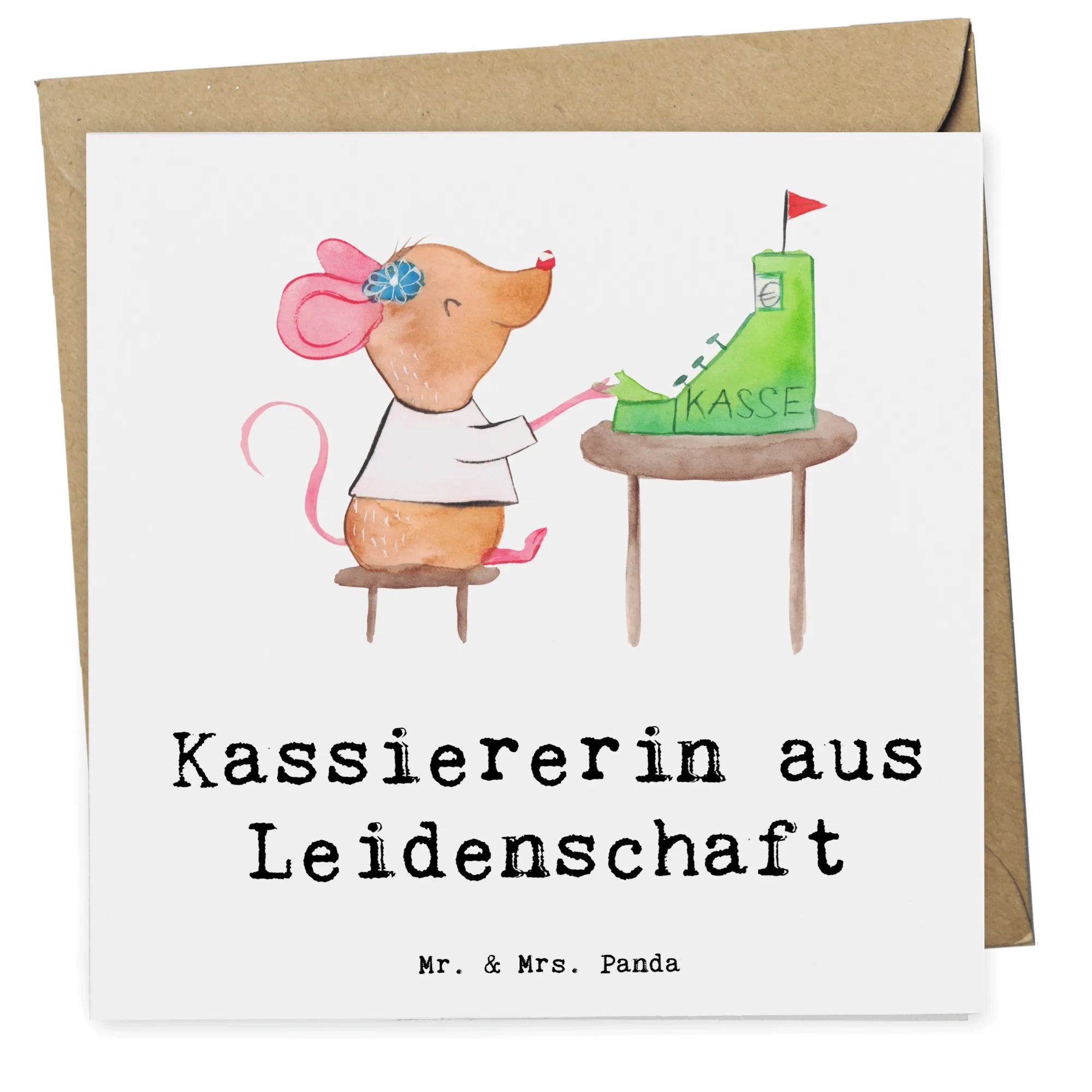 Deluxe Karte „Kassiererin aus Leidenschaft“ – die perfekte Grußkarte für alle, die an der Kasse mit Herz und Humor arbeiten. Unser handgezeichnetes Motiv zeigt eine kleine Maus, die fleißig abkassiert, begleitet vom liebevollen Slogan „Kassiererin aus Leidenschaft“. Diese hochwertige Klappkarte aus der Berufe-Kollektion ist ideal als Geschenk für Kassiererinnen, Mitarbeiterinnen an der Kasse, als Dankeschön oder zum Jubiläum. 🎁