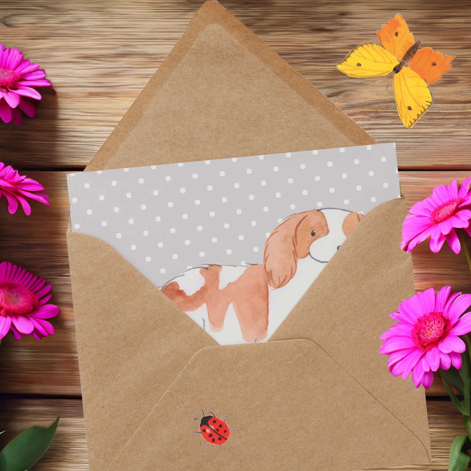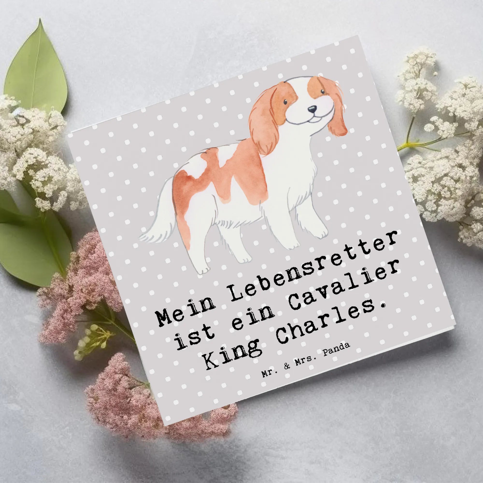 Grußkarte Cavalier King Charles Spaniel Lebensretter - mit Spruch - Grau Pastell