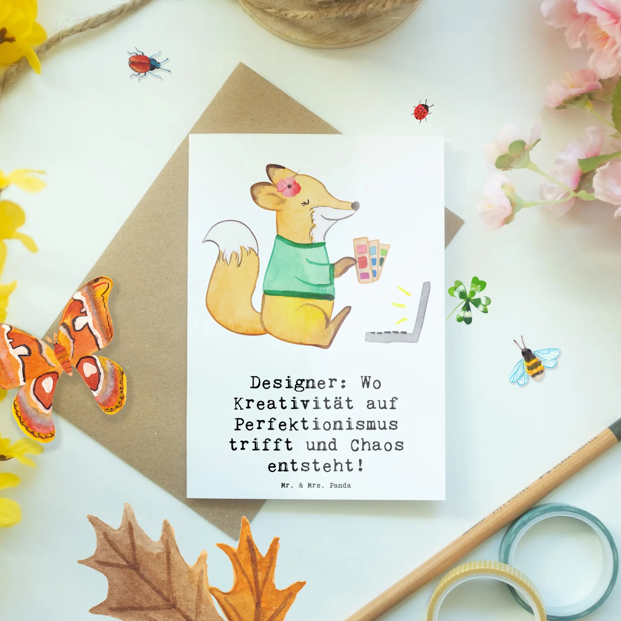 Mit dem charmanten Motiv und dem Spruch "Designer: Wo Kreativität auf Perfektionismus trifft und Chaos entsteht!" drückt Du Deine Wertschätzung und Unterstützung für Designer aus. Egal, ob Du einen Designer zum Geburtstag, zur Hochzeit, zum Berufsabschied oder einfach nur so gratulieren möchtest, diese Grußkarte ist die ideale Wahl.