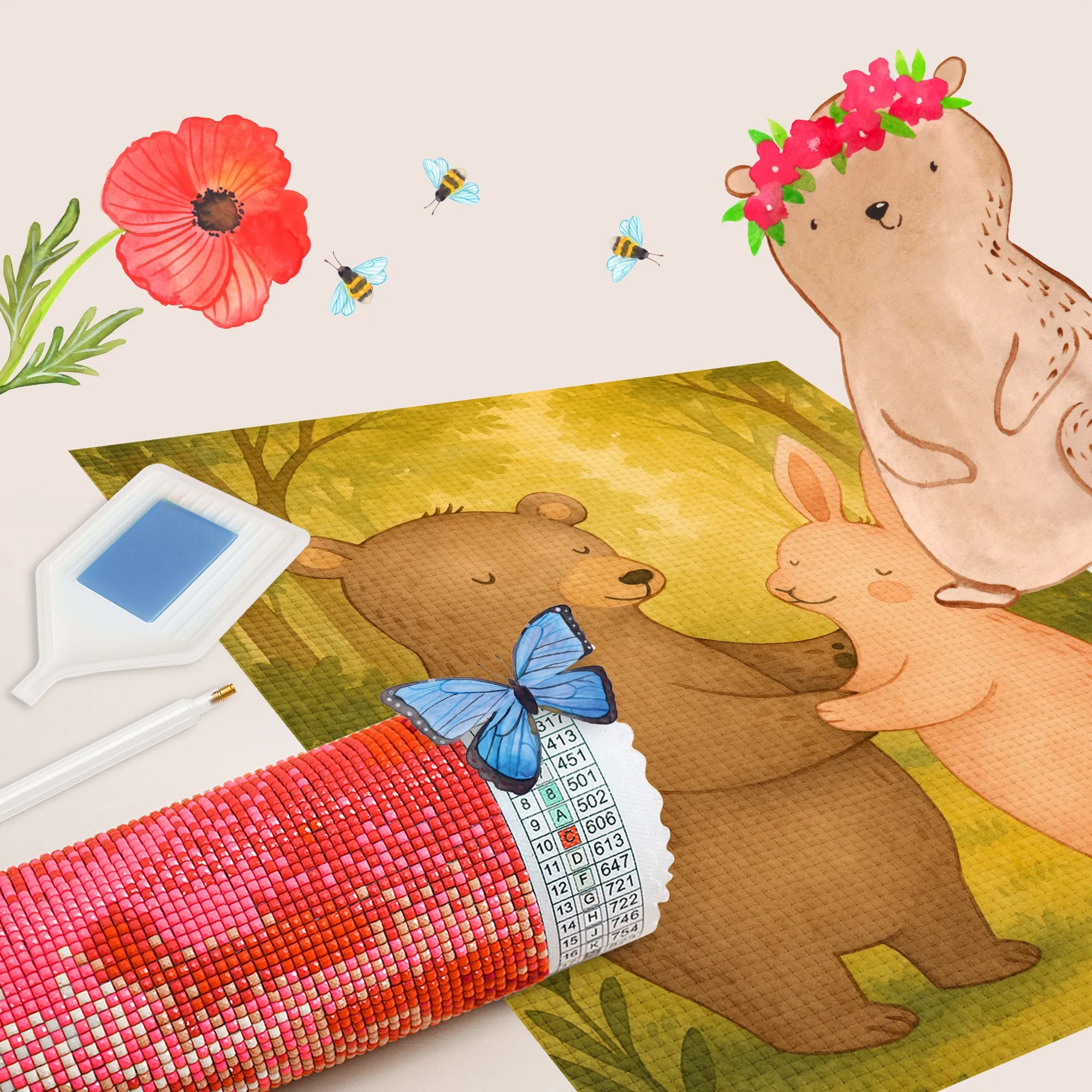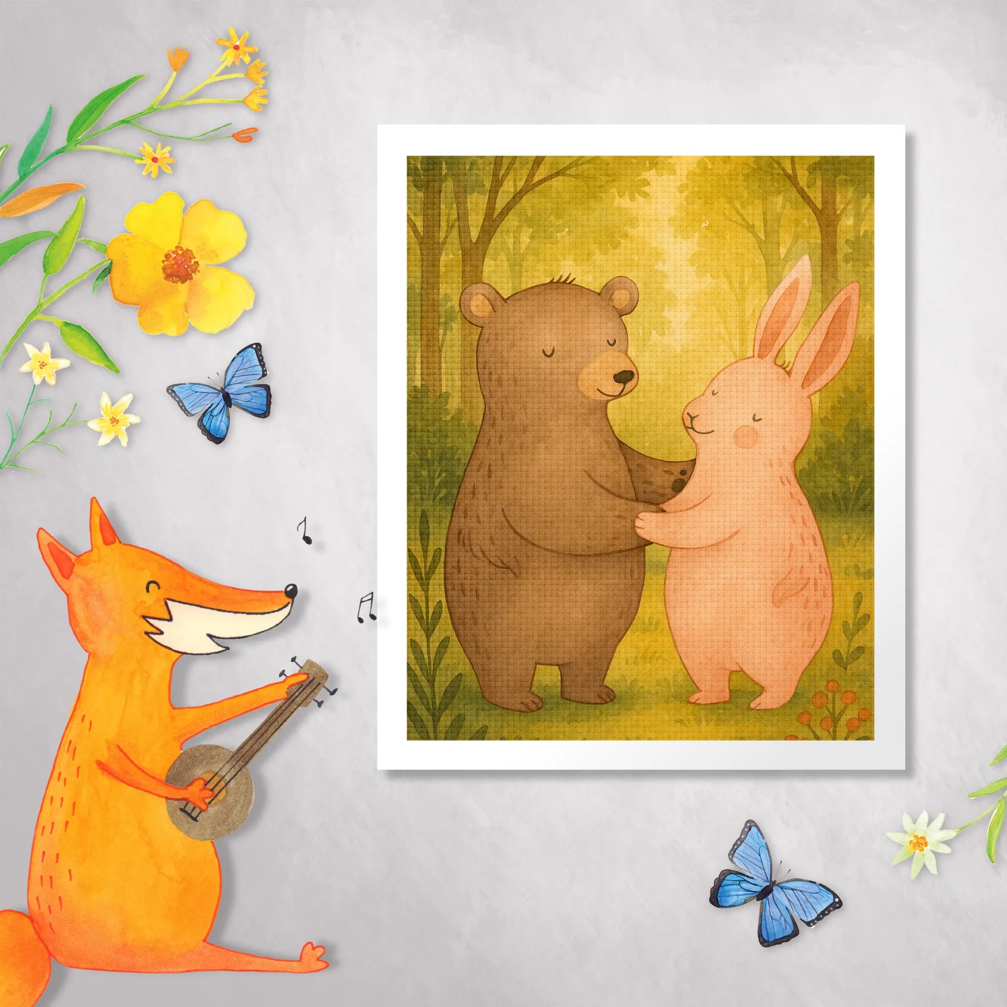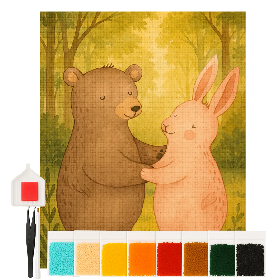 Diamond Painting Bär und Hase Umarmen Design - Ohne Rahmen