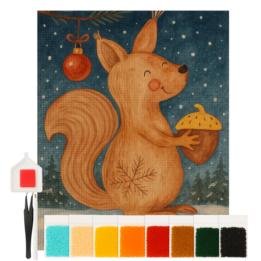 Diamond Painting Eichhörnchen Weihnachten Design - Ohne Rahmen