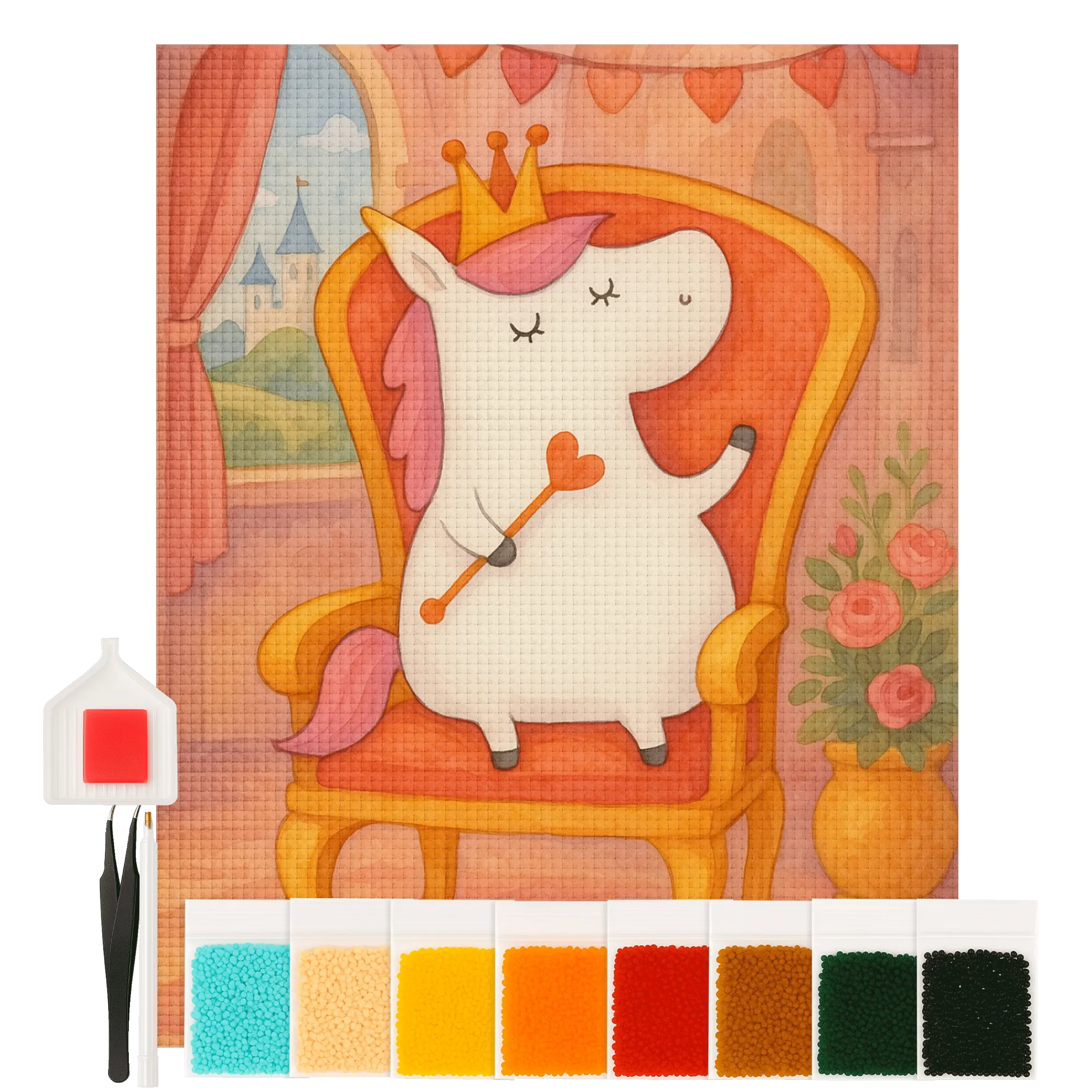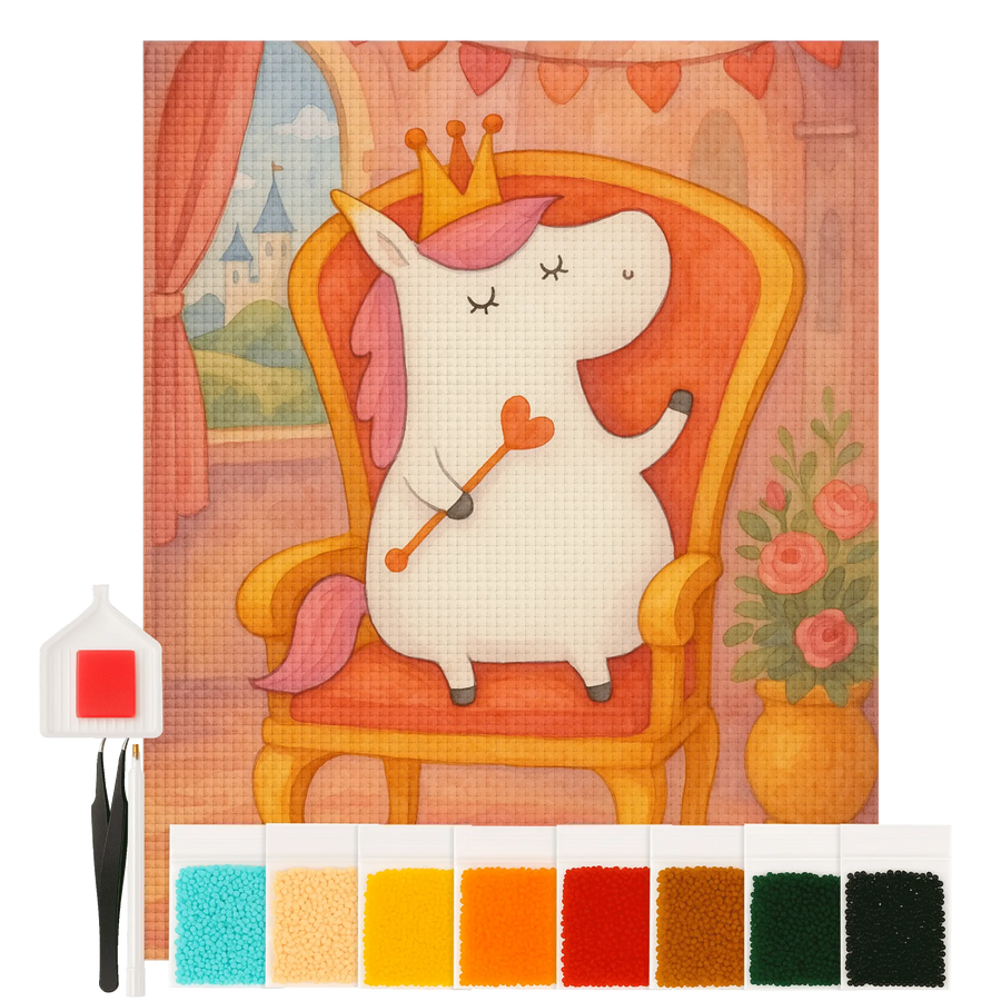 Du liebst Einhörner? Dann ist dieses liebevoll gestaltete DIY Kristallbild genau das Richtige für dich! Auf einer hellen Leinwand sitzt unsere königliche Einhorn-Prinzessin mit Krone und verzaubert jeden Raum. Perfekt als Geschenk zum Geburtstag, als Geburtstagsgeschenk für echte Einhorn-Fans oder als hübsche Einhorn Deko fürs Kinderzimmer. ✨