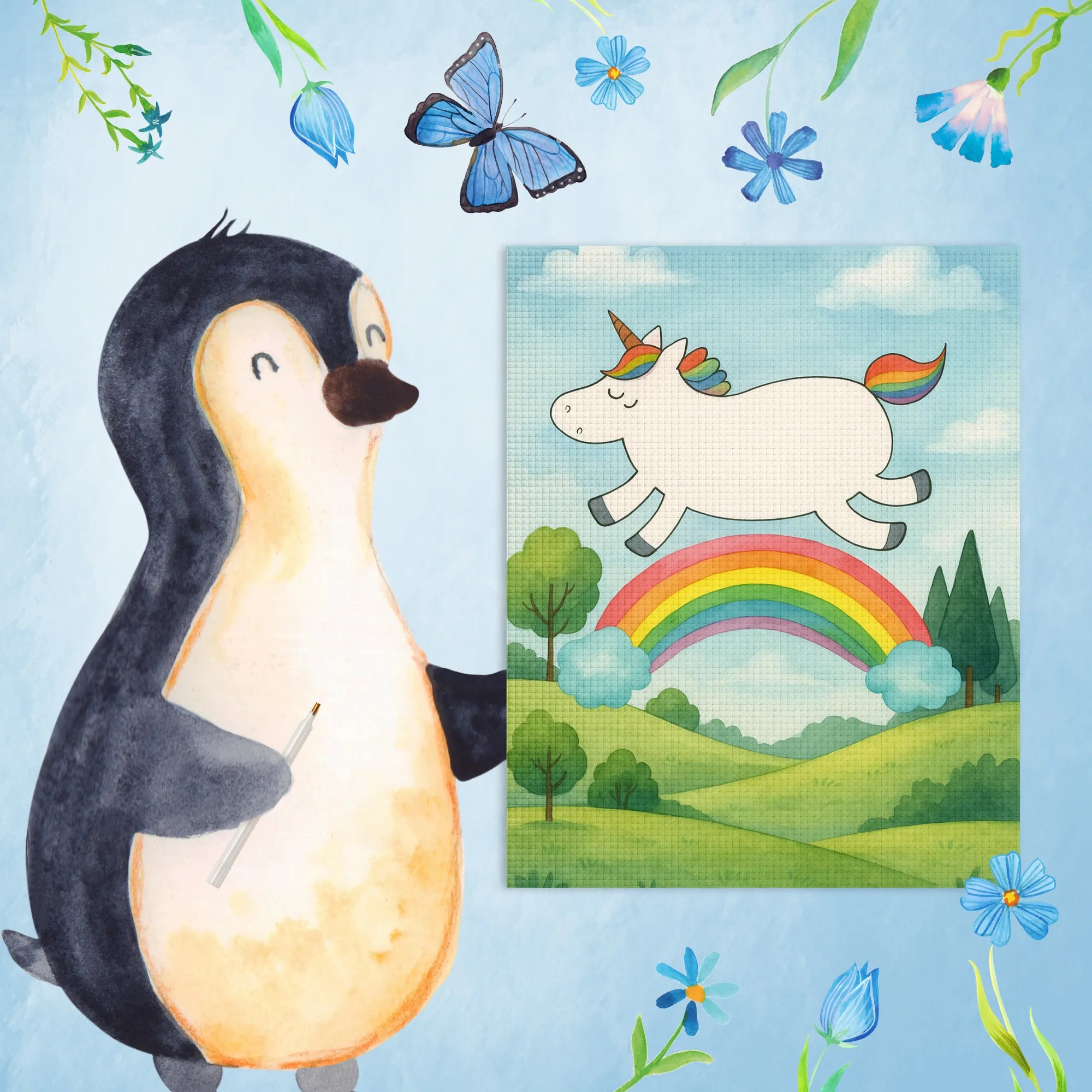 Willkommen in der zauberhaften Welt der Einhörner! Unsere Einhorn-Kollektion von Mr. & Mrs. Panda ist nicht nur ein Fest für die Augen, sondern auch für die Seele. Jedes Motiv, liebevoll von Mrs. Panda händisch mit Aquarell gestaltet, strahlt Freude und Lebenslust aus. Diese Kollektion bringt das glitzernde, magische Gefühl von Einhörnern in dein Zuhause! Egal, ob du ein Einhorn-Fan bist oder einfach nach einer besonderen Deko suchst, hier findest du alles von zauberhaften Wandbildern bis hin zu kuscheligen Kissen und Tassen. Jedes Stück erzählt seine eigene, zauberhafte Geschichte und eignet sich perfekt als Geschenk für jeden Anlass – Geburtstage, Einweihungen oder einfach nur so, um jemandem ein Lächeln ins Gesicht zu zaubern. Lass die Farben und Formen der Einhörner dein Herz berühren und die Fantasie anregen. Hol dir dein eigenes Stück Magie nach Hause und erlebe die Freude, die die Einhorn-Kollektion verbreitet. Es ist an der Zeit, den Zauber in dein Leben zu lassen!