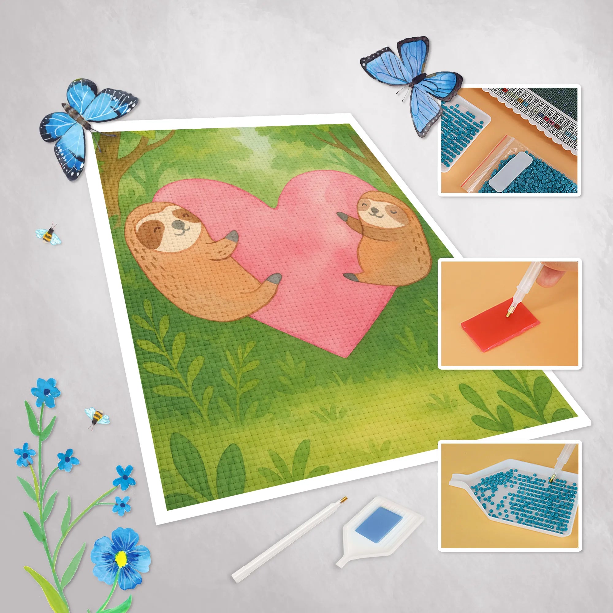 Diamond Painting Faultiere Herz Design - Ohne Rahmen