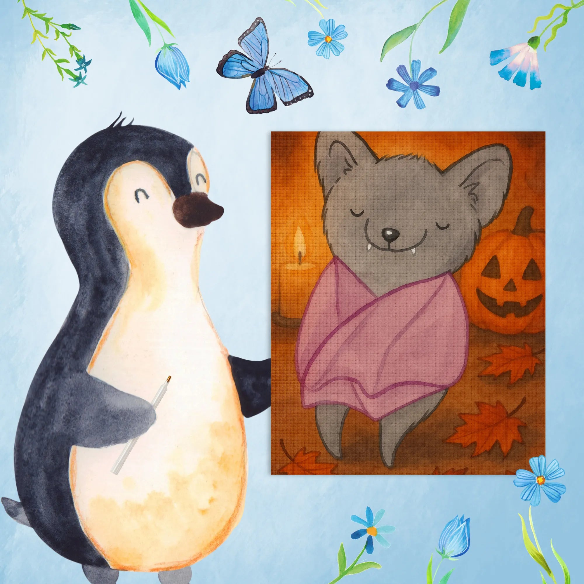 Auf diesem zauberhaften Motiv siehst du eine niedliche, graue Fledermaus, die sich in eine kuschelige rosa Decke eingewickelt hat. Die kleinen, geschlossenen Augen und das zufriedene Lächeln auf ihrem Gesicht lassen jeden sofort zur Ruhe kommen. Hier wird Entspannung großgeschrieben! Die Fledermaus strahlt eine Gemütlichkeit aus, die an einen perfekten Abend erinnert, wo du einfach mal abschaltest und das Leben genießt. Mit diesem Bild wird jeder Raum sofort zum Rückzugsort, denn die süße Fledermaus weiß, wie man das Leben in vollen Zügen genießen kann. Die Kombination aus dem sanften Grau der Fledermaus und dem leuchtenden Rosa der Decke schafft eine harmonische Atmosphäre, die Wärme und Geborgenheit versprüht. Lass dich von diesem Motiv inspirieren und bringe einen Hauch von Ruhe in dein Zuhause!