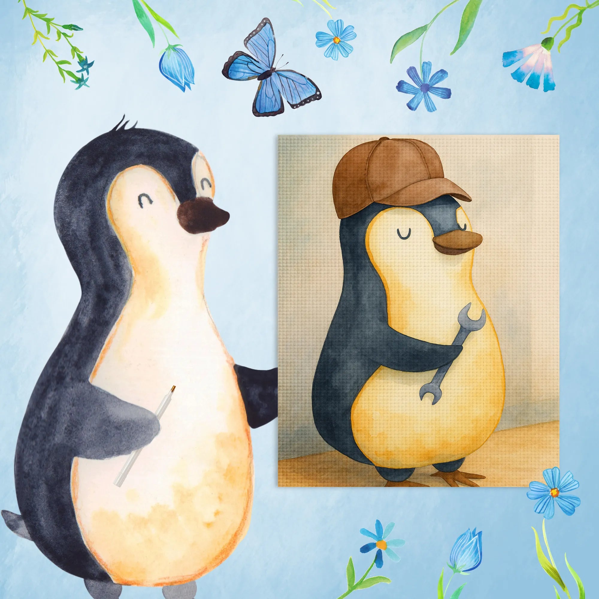 Der coole Pinguin mit der braunen Mütze und dem Schraubenschlüssel ist nicht nur charmant, sondern auch der perfekte Botschafter für alle Väter, die stets bereit sind, alles zu reparieren. Mit einem spielerischen Lächeln vermittelt er: Wenn Papa es nicht reparieren kann, dann steht die Welt Kopf! Dieses Motiv ist eine wirklich schöne Hommage an den besten Papa der Welt und ein ideales Geschenk für Vatertag. Es erinnert uns daran, dass Väter oft die unbezahlbaren Helden unserer Kindheit sind, die uns durch jedes kleine Missgeschick helfen – ob mit einem Werkzeug oder einfach mit ihrer Liebe. Lassen Sie sich von diesem Pinguin inspirieren, der in seiner lässigen Art zeigt, wie wichtig diese besonderen Momente sind. Mit einem Hauch von Humor und viel Herz trägt das Motiv dazu bei, die Liebe zu den Vätern zu feiern. Ein Geschenk, das nicht nur Freude bringt, sondern auch ein Lächeln auf die Lippen zaubert und eine nachhaltige Erinnerung an die tollen Zeiten mit Papa schafft.