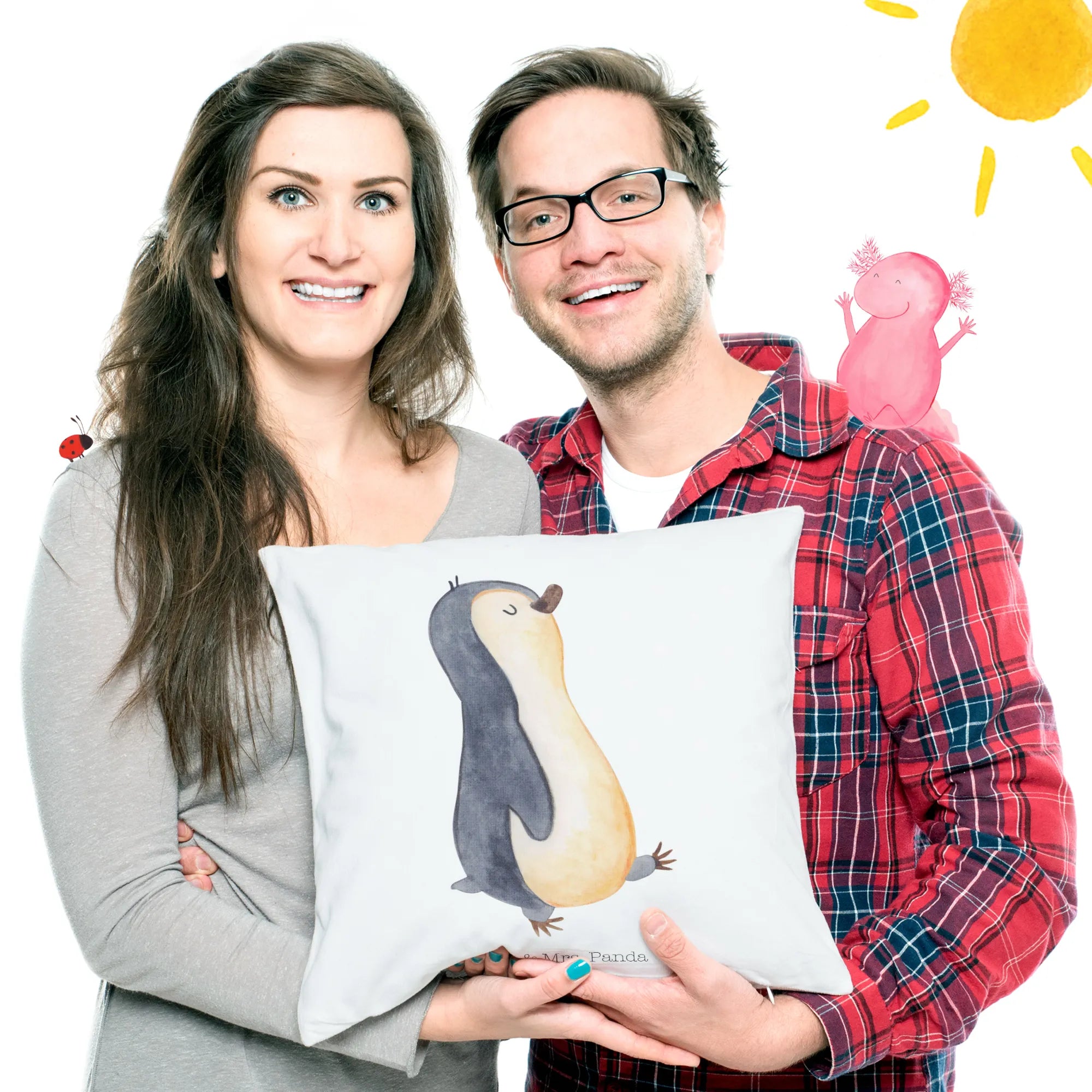 Entdecke unser bezauberndes 40x40 Kissen mit dem knuffigen Motiv 'Pinguin marschierend' aus der einzigartigen Pinguin-Kollektion von Mr. & Mrs. Panda!