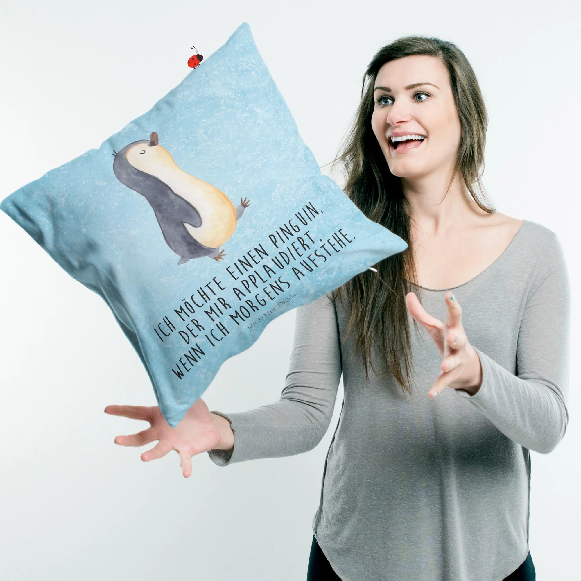 Couchkissen Pinguin marschieren - mit Spruch - Eisblau