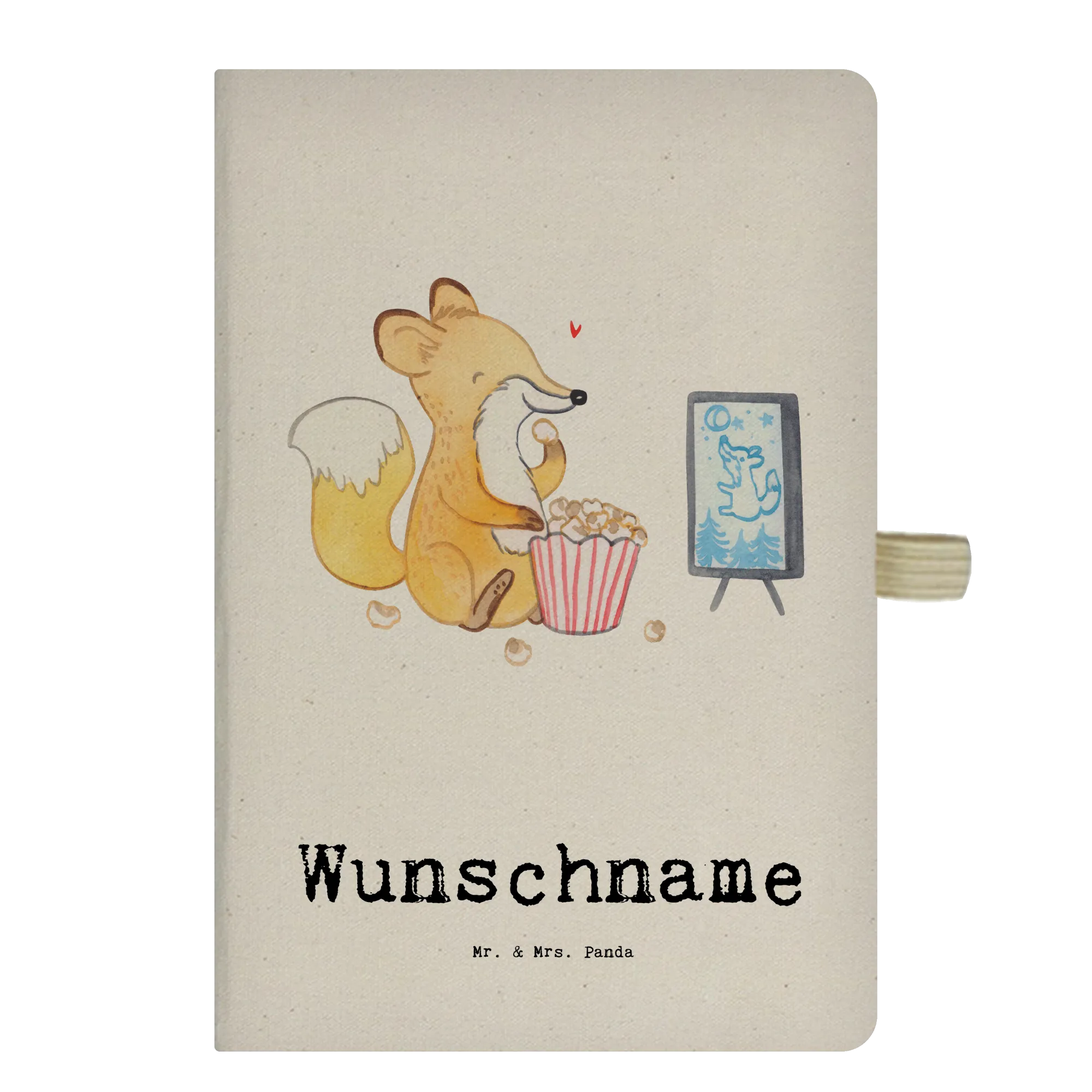 Suchst du nach dem perfekten Geschenk für alle Film-Liebhaber in deinem Freundeskreis? Dann ist das DIN A4 Personalisiertes Notizbuch mit dem bezaubernden Motiv "Fuchs Filme gucken Tage" aus der Kollektion Hobby & Sport von Mr. & Mrs. Panda genau das Richtige!