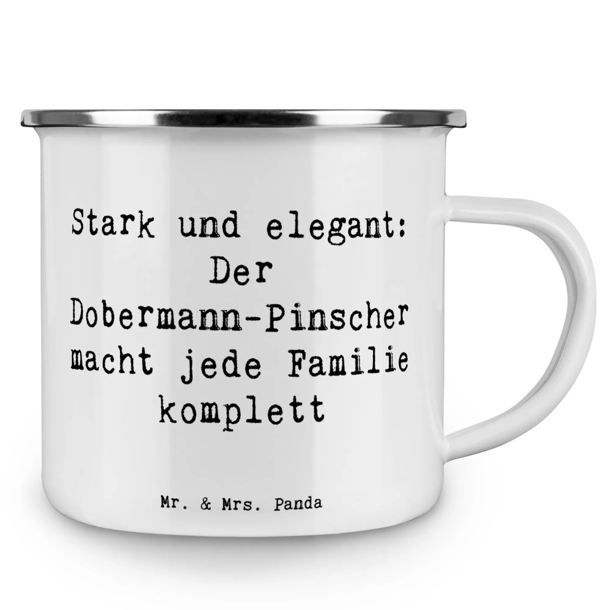Die Camping Emaille Tasse mit dem zauberhaften Dobermann Pinscher Motiv von Mr. & Mrs. Panda ist nicht nur ein praktisches Utensil für deine Ausflüge in die Natur, sondern auch ein liebevolles Andenken für alle Hundefreunde. Mit einem Durchmesser von 8 cm und einer Füllmenge von 300 ml passt sie perfekt in jeden Rucksack und ist somit das ideale Geschenk für Campingliebhaber und Hundebesitzer zugleich.