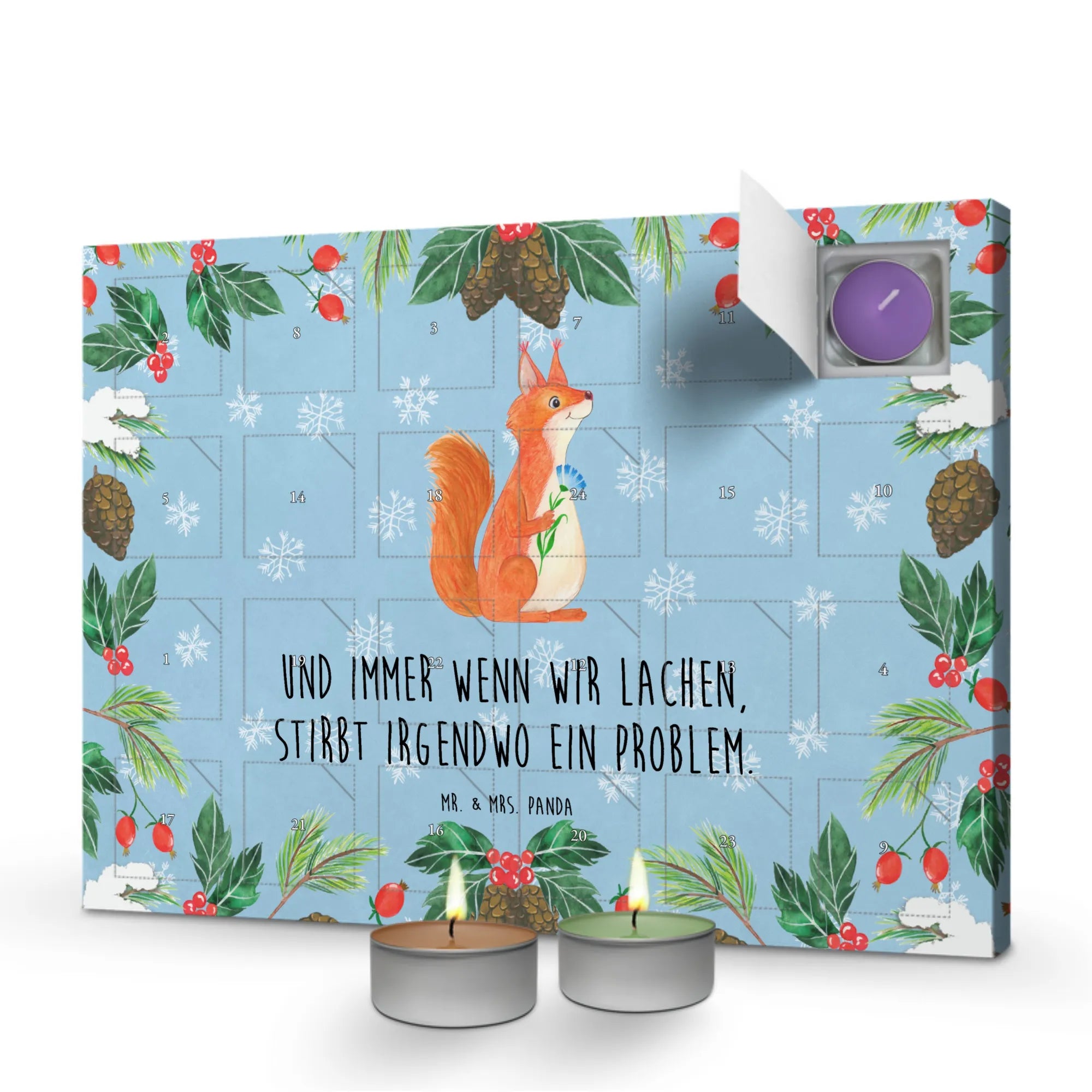 Der Duftkerzen Adventskalender Eichhörnchen Blume von Mr. & Mrs. Panda ist der perfekte Begleiter für die besinnliche Adventszeit. Jeder Tag bringt eine neue, zauberhafte Überraschung in Form von wohltuenden Duftkerzen, die nicht nur dein Zuhause in festlicher Stimmung erstrahlen lassen, sondern auch für gute Laune sorgen. Mit einem süßen Eichhörnchen-Motiv und dem liebevollen Spruch: 'Und immer wenn wir lachen, stirbt irgendwo ein Problem.', ist dieser Adventskalender nicht nur ein Duft-Highlight, sondern auch ein richtiger Stimmungsmacher.