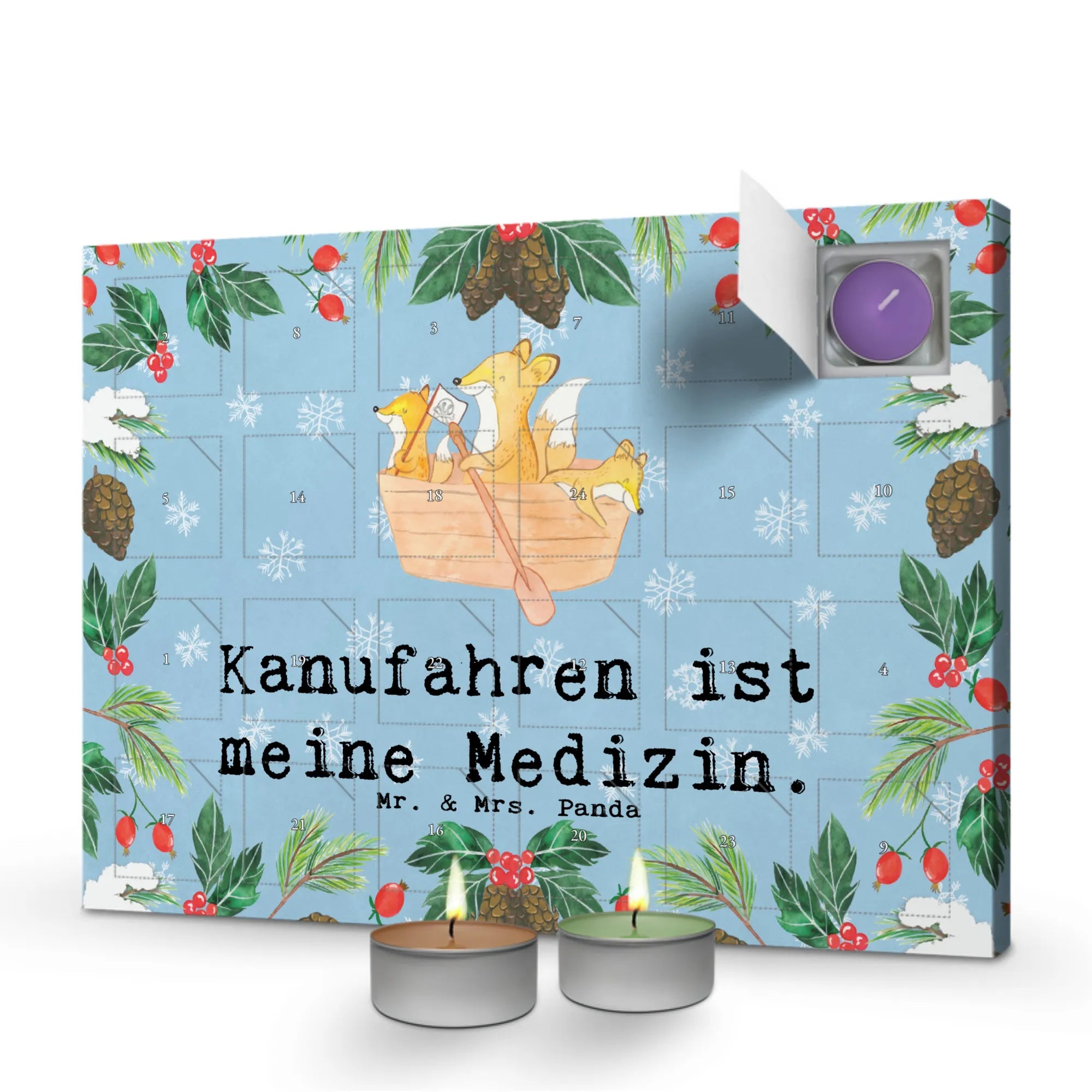 Der Duftkerzen Adventskalender "Bär Kanufahren Medizin" von Mr. & Mrs. Panda ist das perfekte Geschenk für alle Sportbegeisterten und Hobby-Fans, die die Natur und das Wasser lieben! 🌊🎁 Er ist nicht nur ein fröhliches Dekorationsobjekt zur Adventszeit, sondern auch eine wunderbare Möglichkeit, sich die kalte Jahreszeit mit warmen, weihnachtlichen Düften zu versüßen.