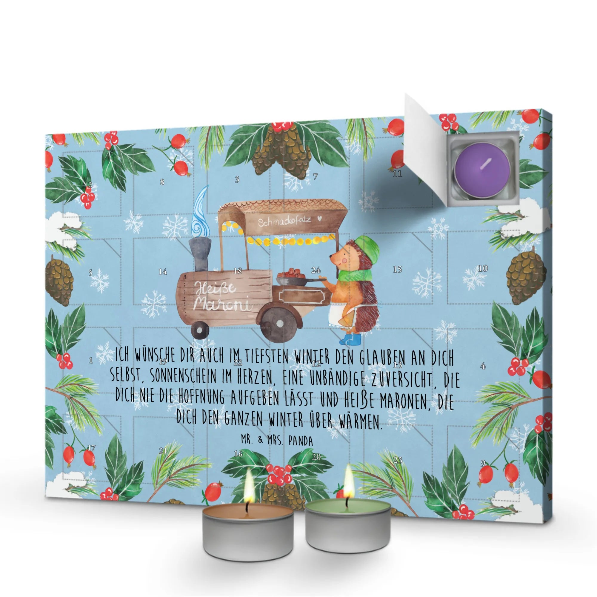 Entdecke die Magie des Winters mit unserem zauberhaften Duftkerzen Adventskalender "Igel Maronen" aus der Winter Kollektion von Mr. & Mrs. Panda!