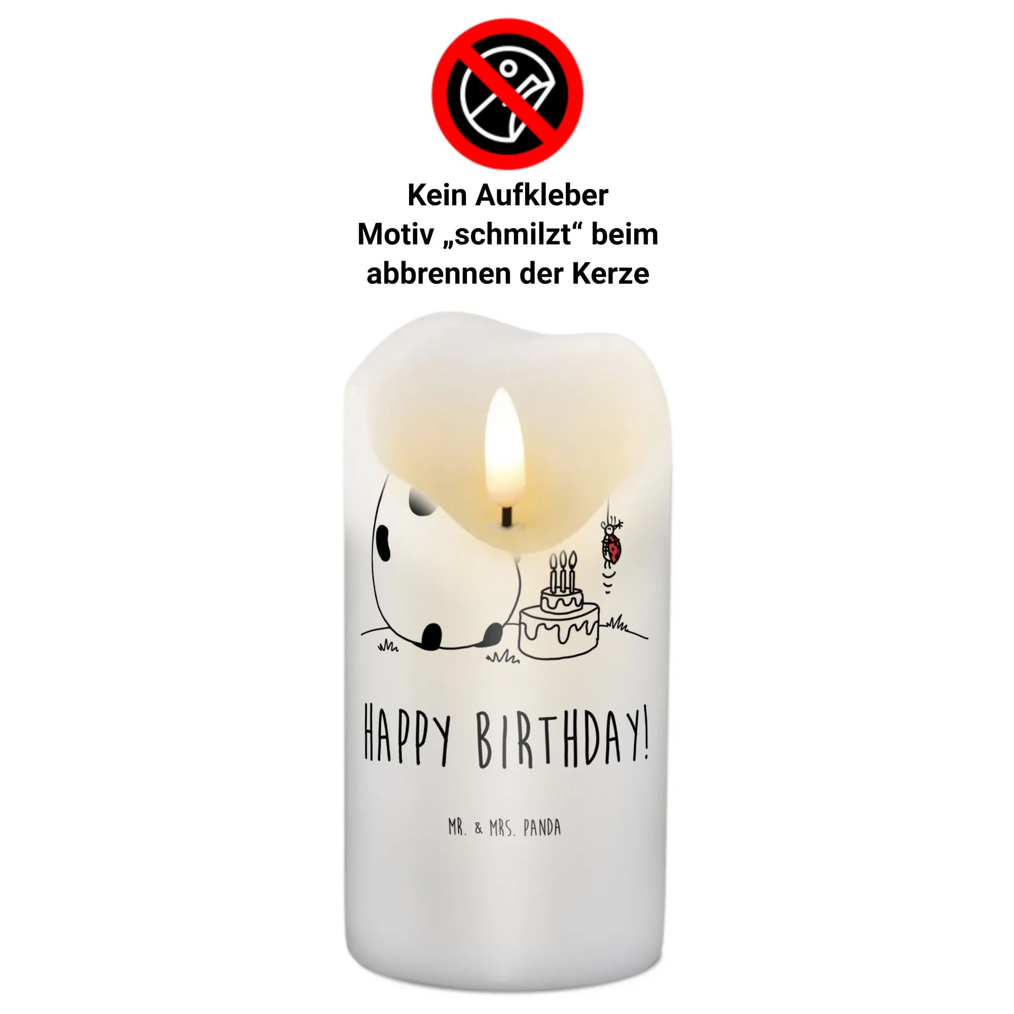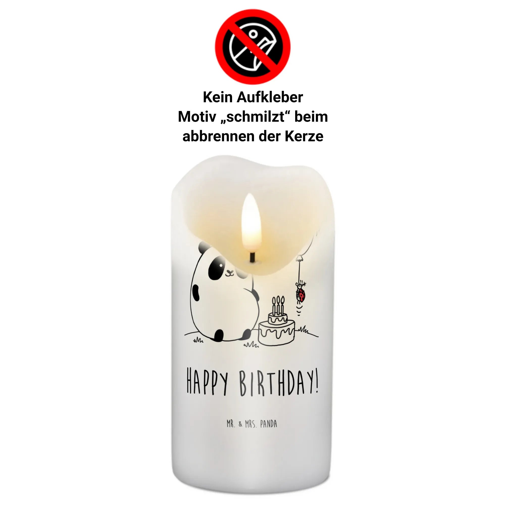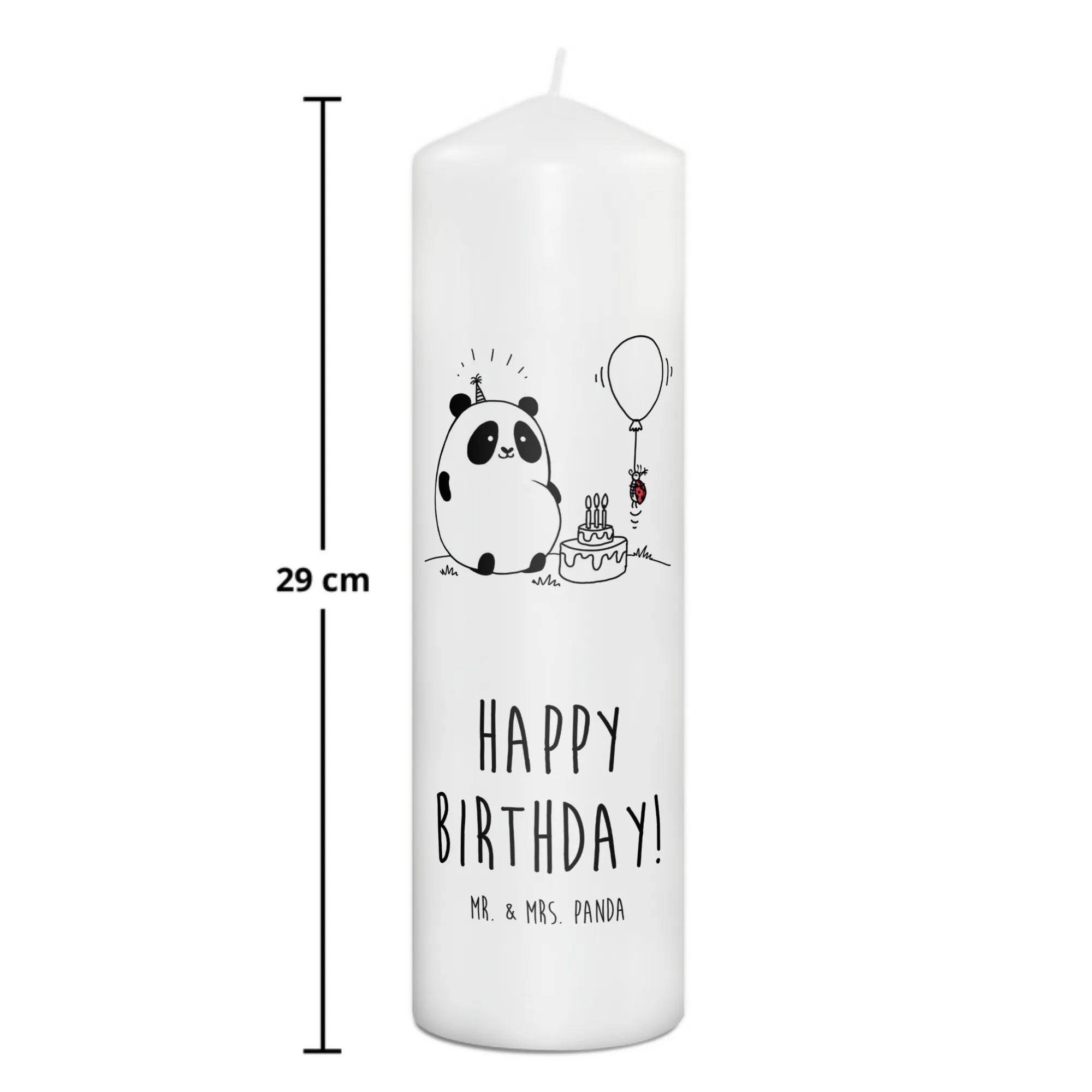 Mit einem liebevoll gestalteten Motiv eines süßen Pandas, der mit einem Partyhut auf dem Kopf vor einer Geburtstagstorte sitzt, und einem kleinen Marienkäfer, der an einem Luftballon hängt, bringt sie ein Lächeln auf jedes Gesicht. Der Slogan "Happy Birthday!" macht die Kerze zu einem idealen Geschenk für Kinder und Erwachsene, die ihren besonderen Tag feiern.