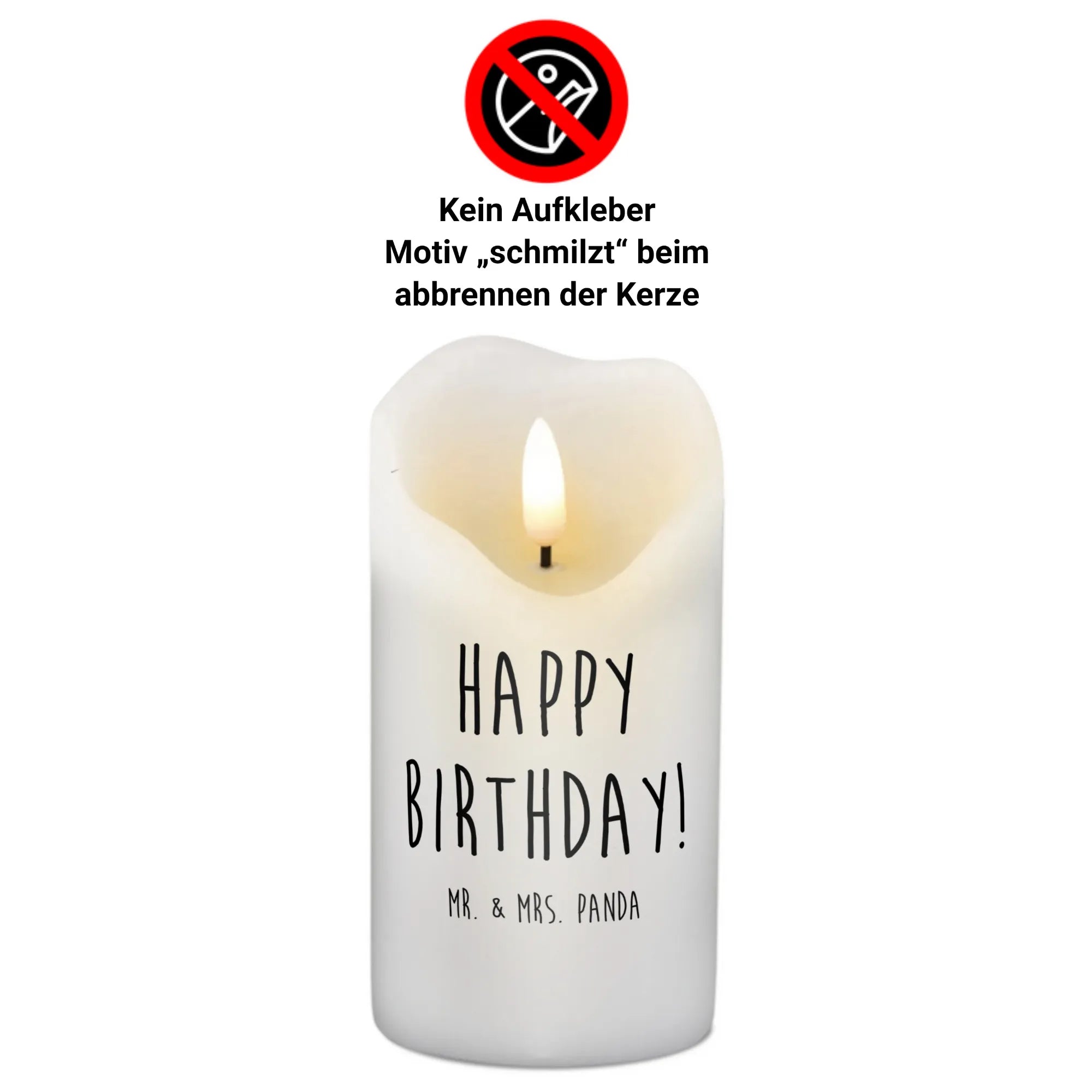 Mit ihrem fröhlichen Slogan 'Happy Birthday!' setzt diese Kerze einen perfekten Akzent auf jeder Geburtstagstafel. Hergestellt aus hochwertigem Paraffinwachs, bietet sie eine ultralange Brenndauer und sorgt für eine besondere Stimmung. Das liebevoll handgezeichnete Design von Mrs. Panda schmilzt beim Abbrennen und hinterlässt ein einzigartiges Erlebnis.