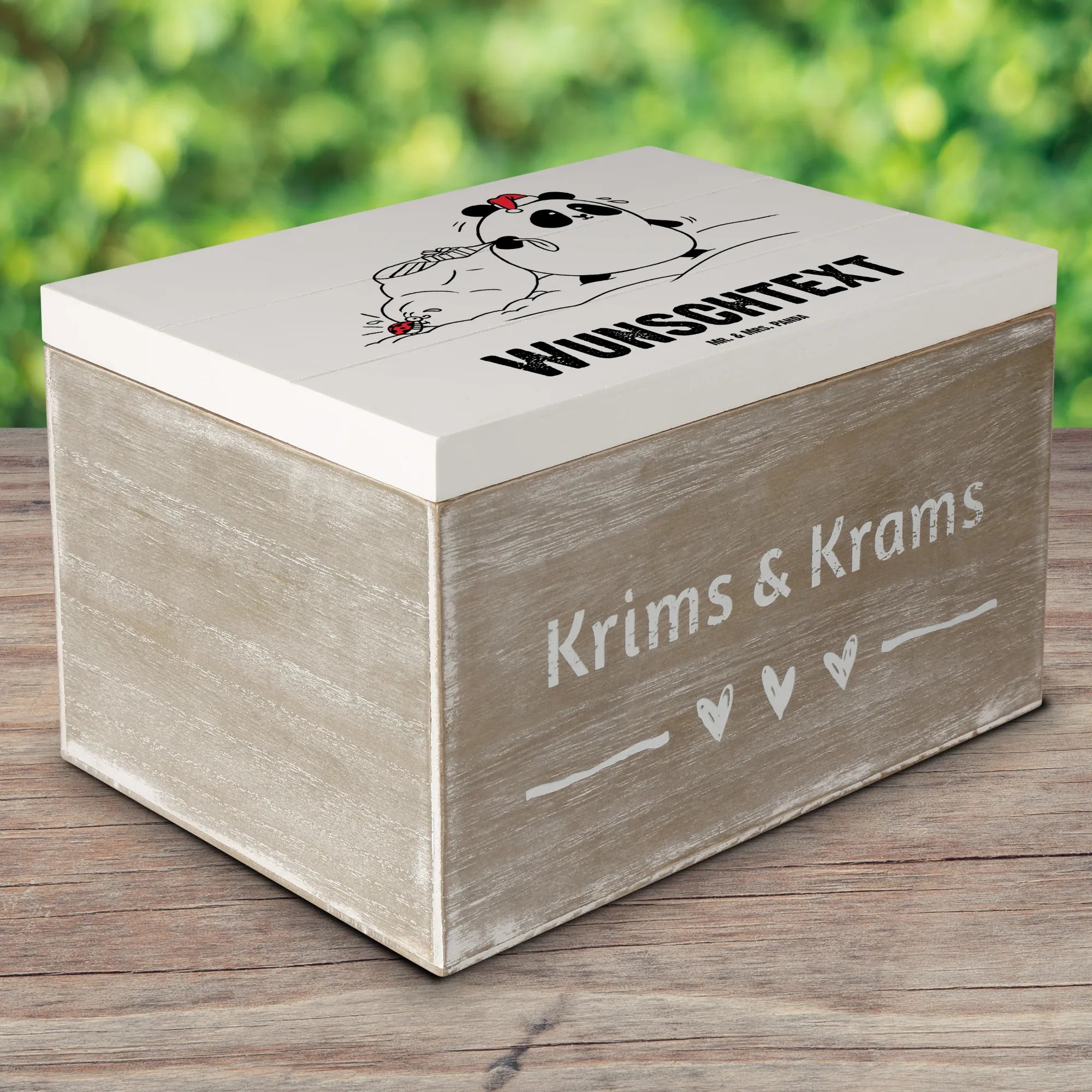 Diese Holzkiste aus der "Easy & Peasy" Kollektion von Mr. & Mrs. Panda ist mehr als nur ein Aufbewahrungsort – sie ist ein echtes Stück Freude und Persönlichkeit. Verschenke unvergessliche Momente mit dieser einzigartigen Erinnerungskiste, die einfach perfekt für die Weihnachtszeit ist!