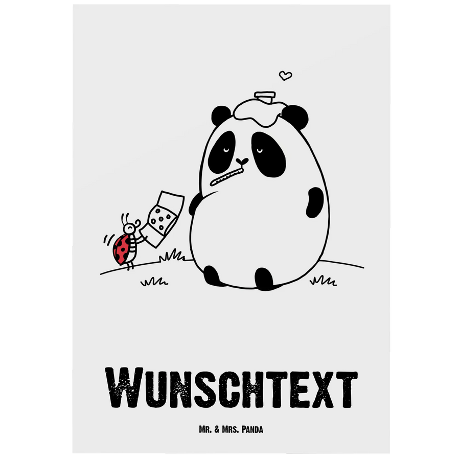 Die Karte zeigt einen niedlichen Panda, der erkältet ist, und sein kleiner bester Freund, der Marienkäfer, hilft ihm durch die schwierige Zeit mit einem Pflaster. So zauberhaft die beiden Charaktere auch aussehen, so wichtig ist die Botschaft - gute Besserung!